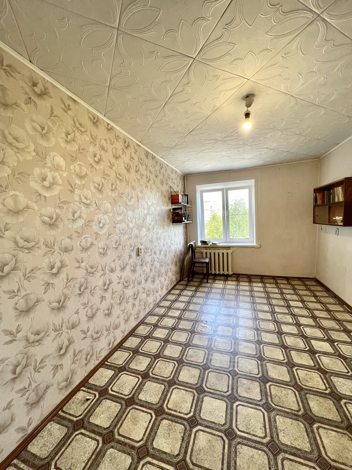 Светлая комната в хорошем состоянии, пластиковое окно, светлые обои, линолеум.