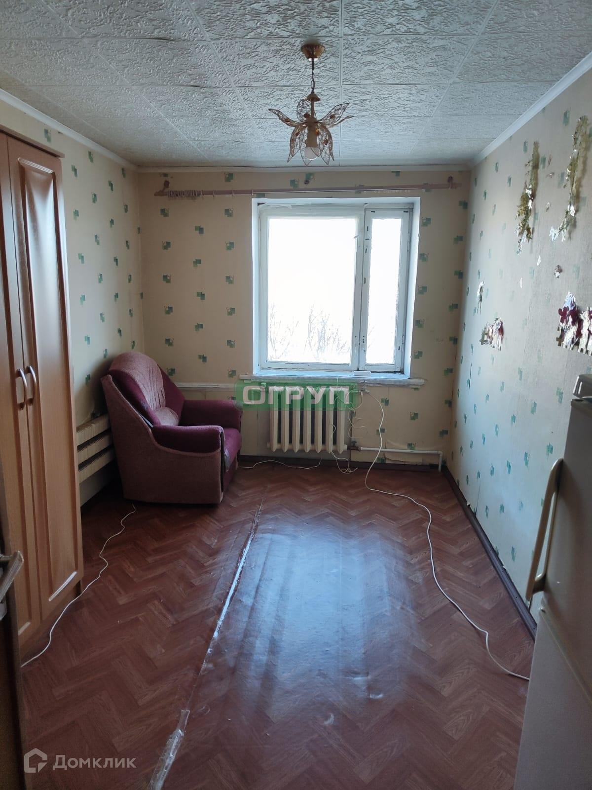 5/5 этаж, кирпичный дом.  Площадь комнаты 12м2. Комната  в обычном состоянии: обои, линолеум. Все соседи порядочные, живут только в одной комнате. Места общ.пользования в  норм. состоянии, в общем холле есть место для своей кухонной зоны. Развитая инфраструктура: рядом остановка общ. транспорта, магазины и др.