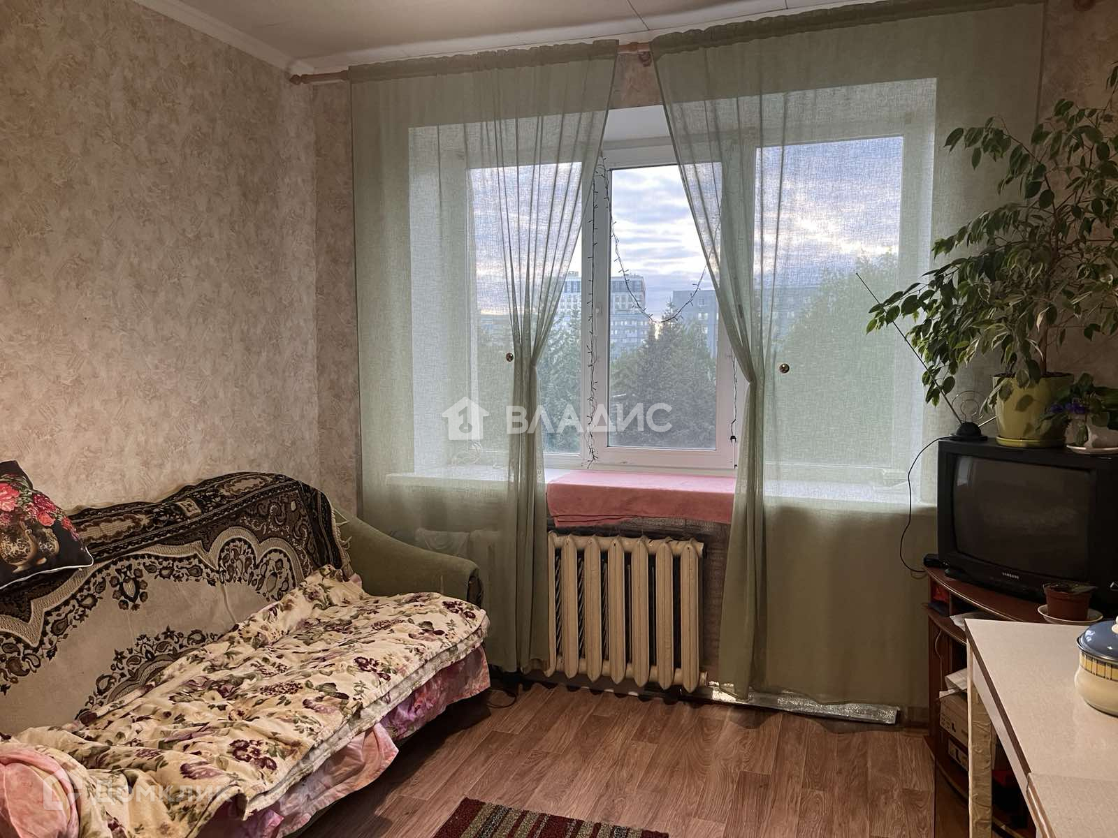 В комнате очень уютно, сделан косметический ремонт: пластиковое окно, на полу линолеум, входная металлическая дверь.