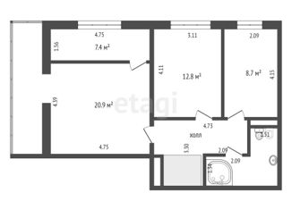 Общая площадь: 74.7 м2