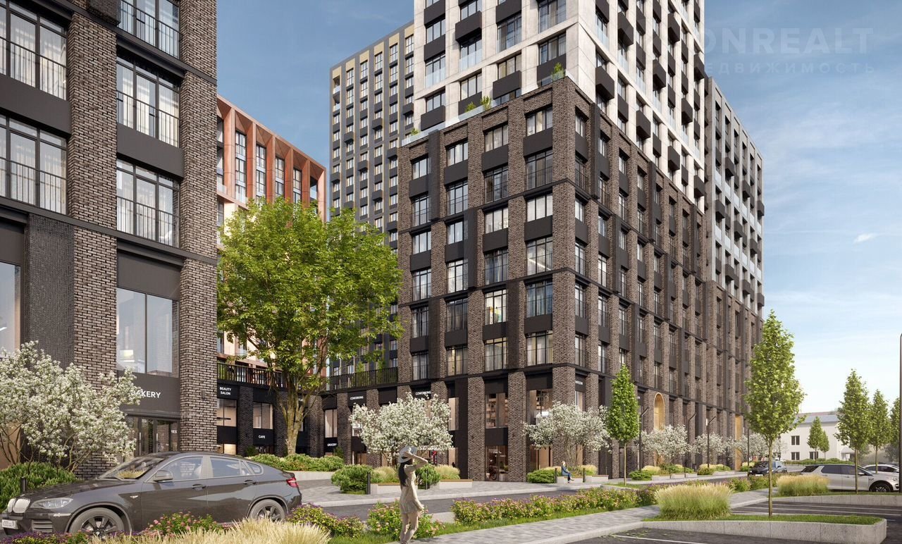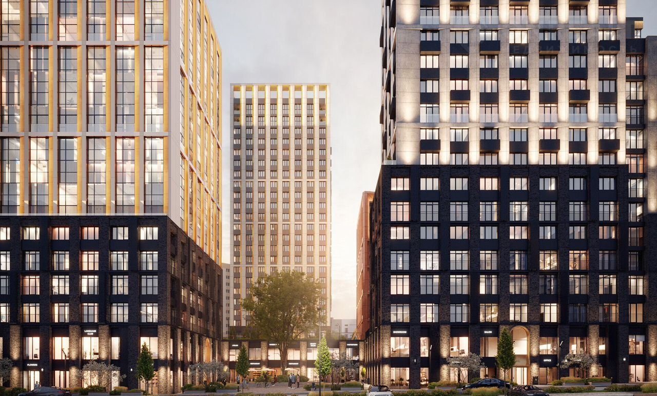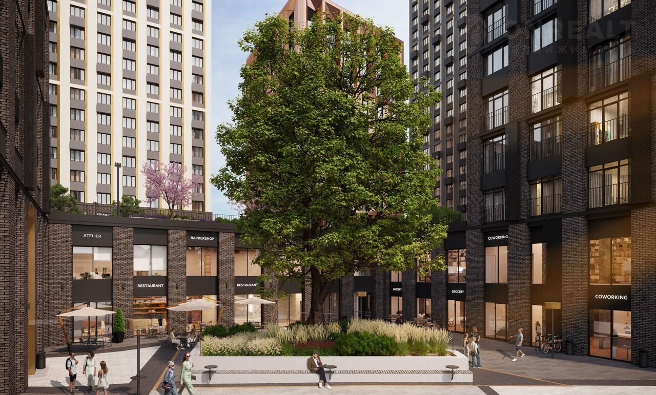 Собственная инфраструктура ЖК - линия коммерческих помещений с магазинами, кафе и ресторанами