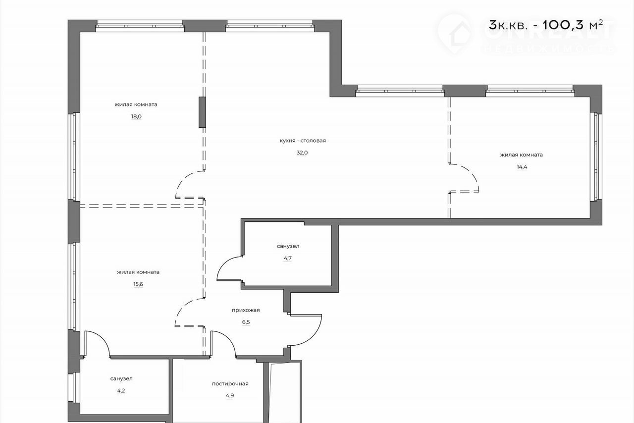 Общая площадь 100.3 м2