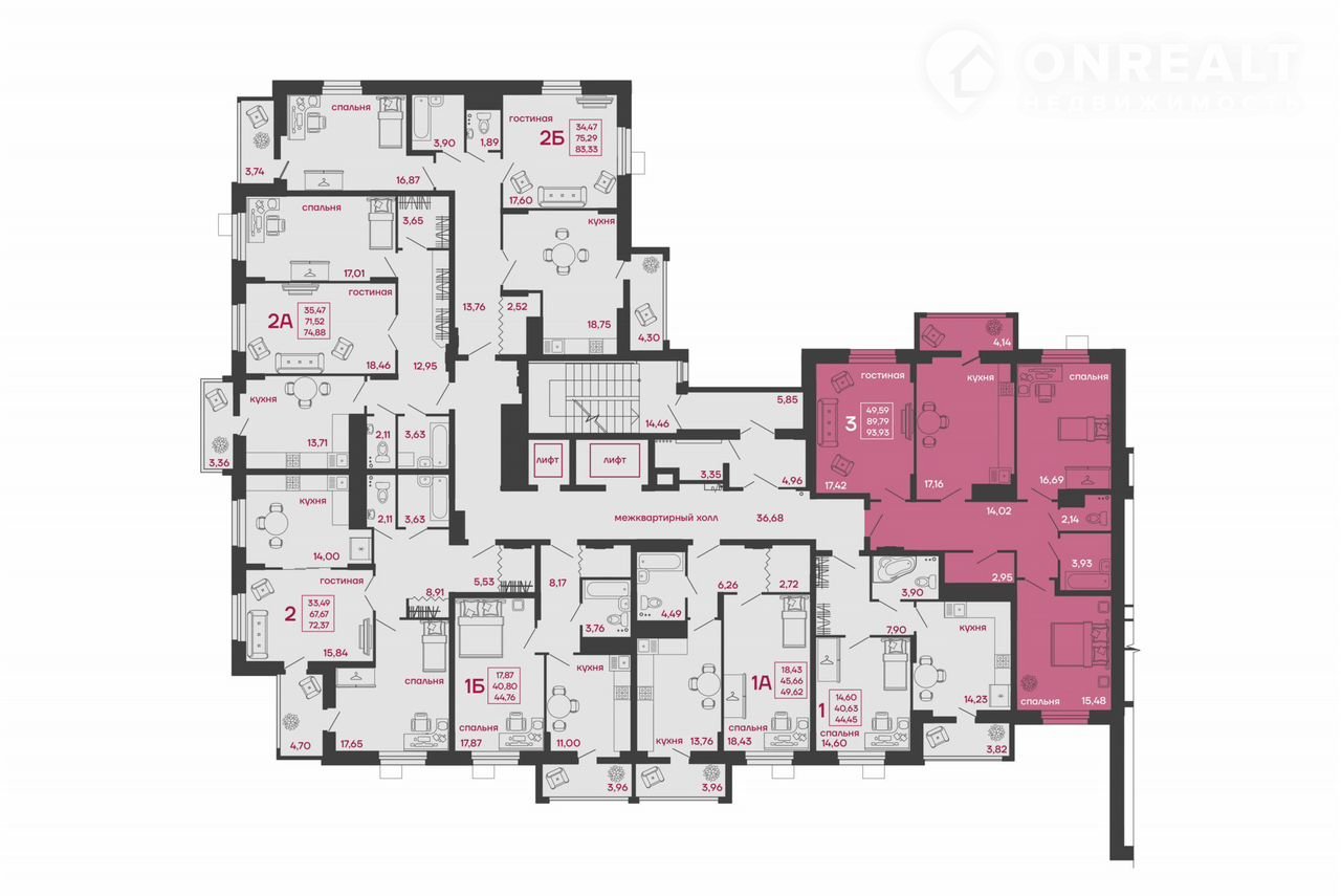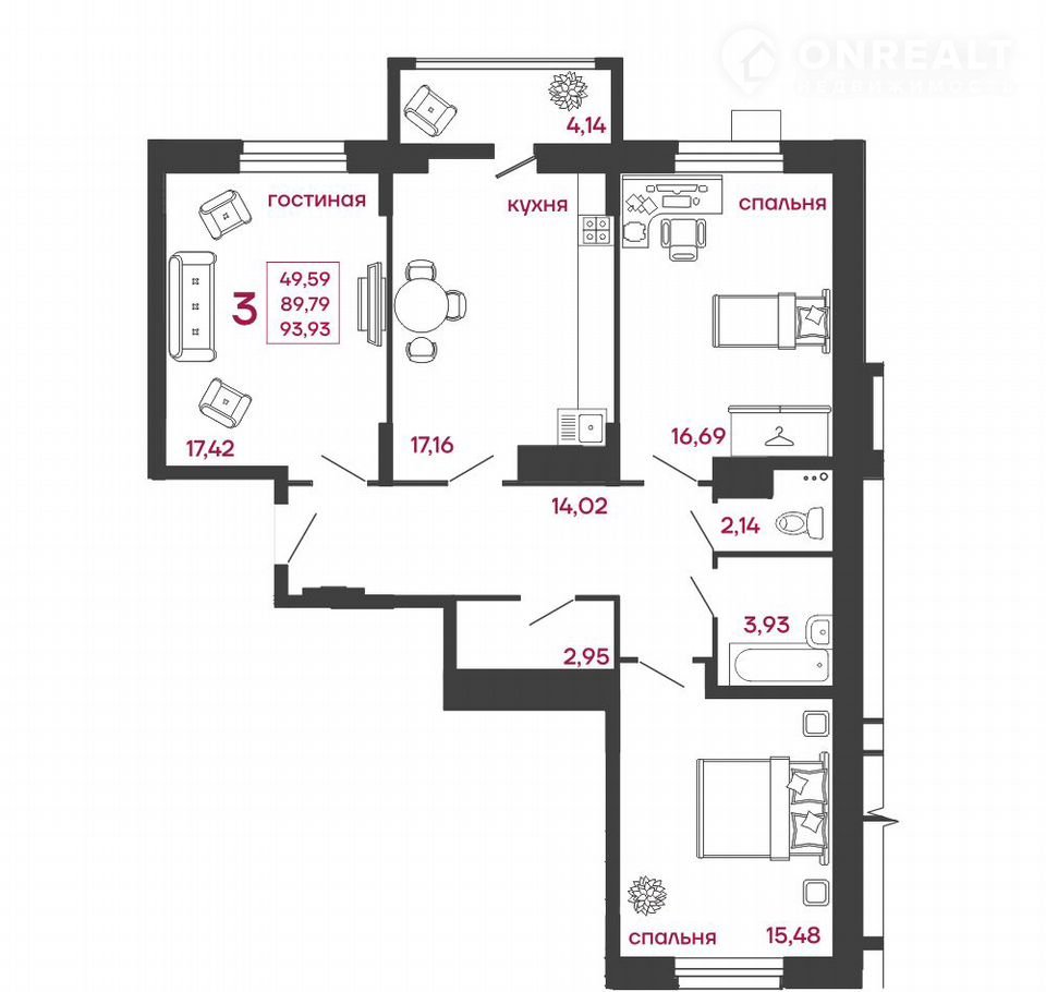 Общая площадь 93.9 м2