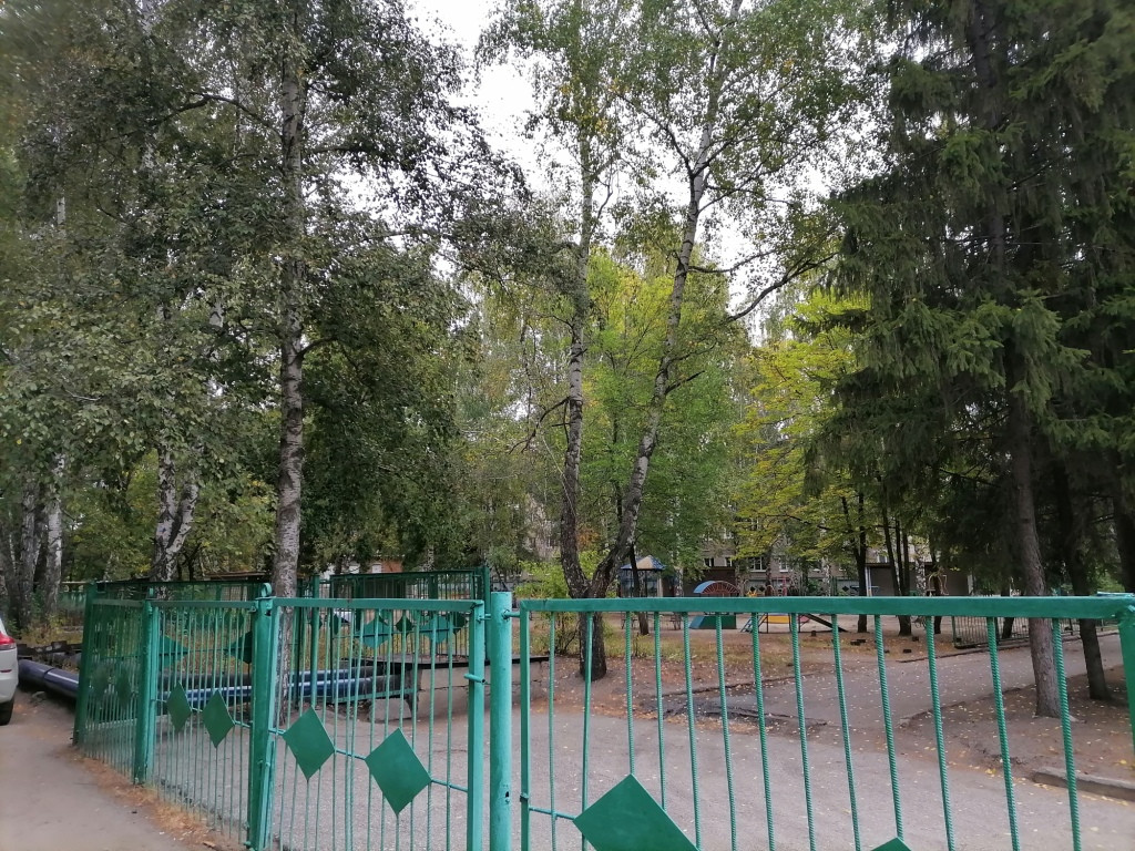Окно выходит во двор, вид на детский садик.