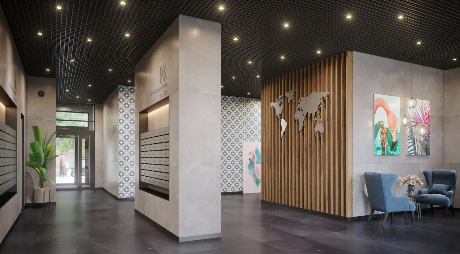 - 4 стилизованных лобби площадью от 159 до 353 м2