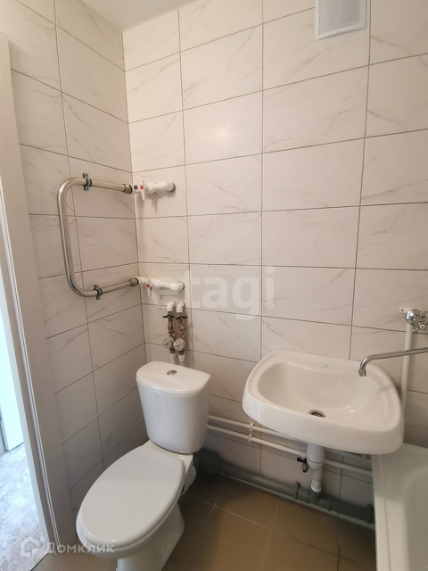-санузел в плитке, установлена сантехника и счётчики,