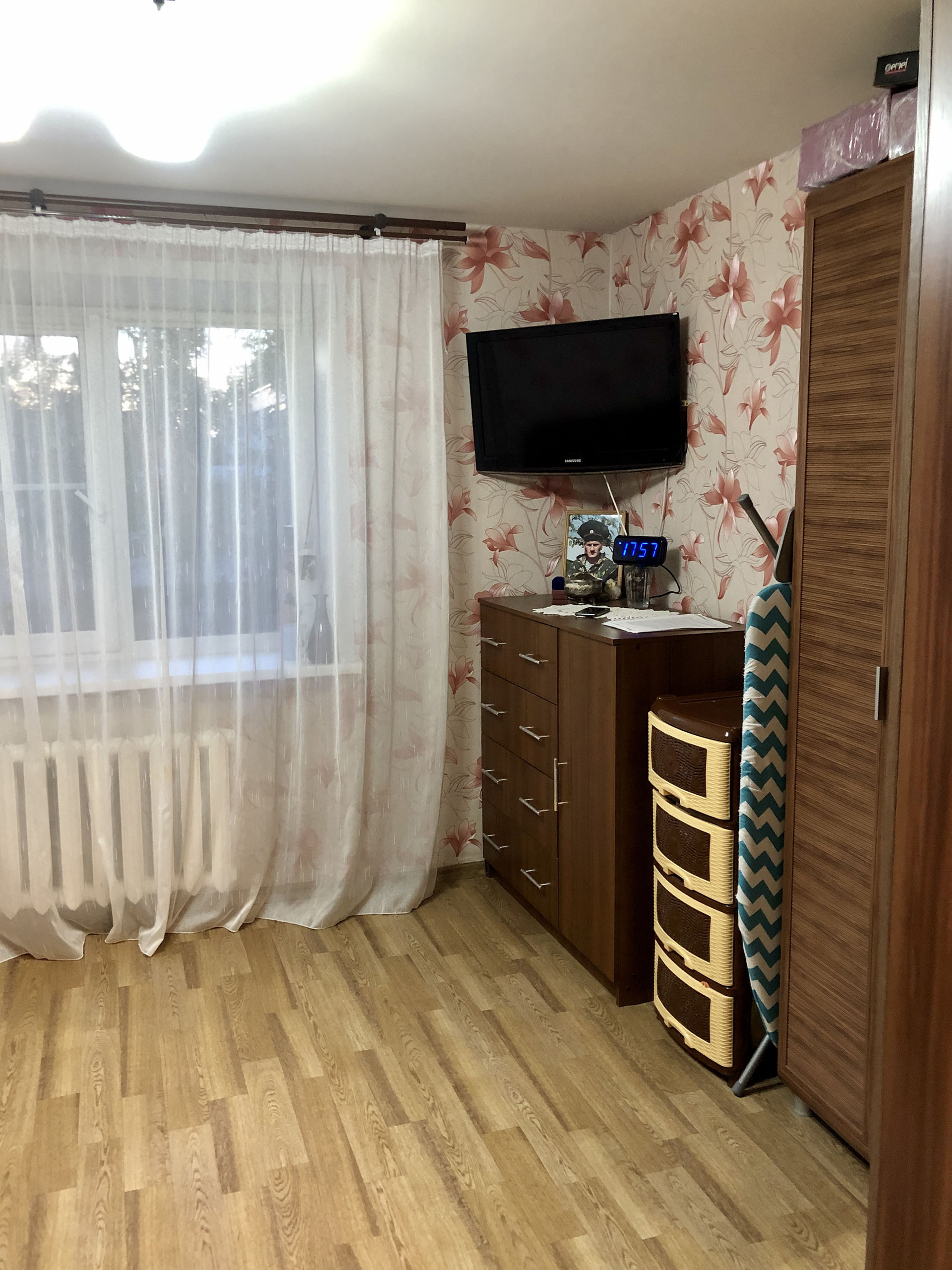 В отличном состоянии, пол -линолеум, потолки выровнены, сантехника и трубы заменены.