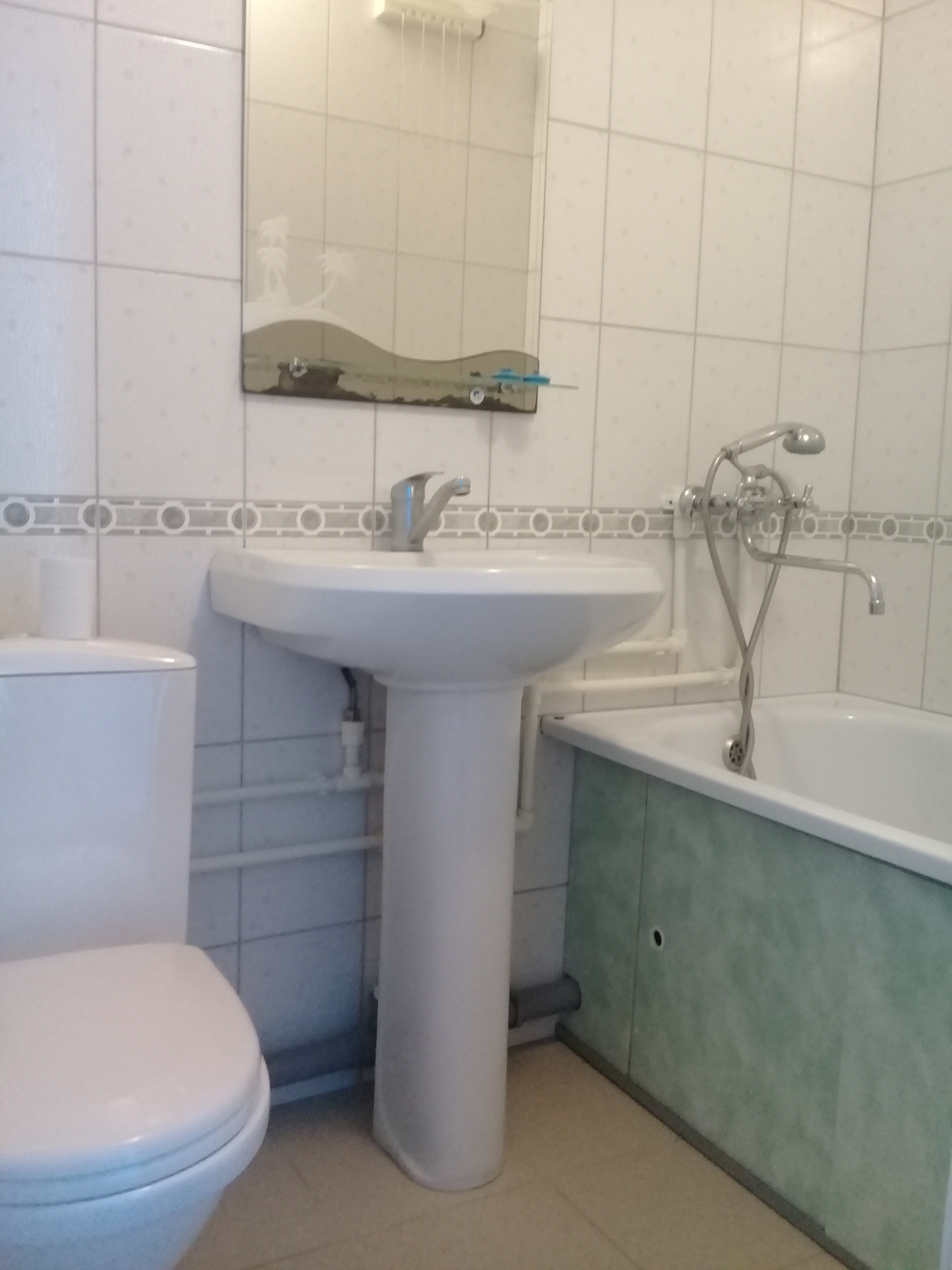 -санузел совмещен, в кафеле современного образца