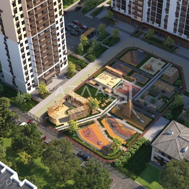 Игровые площадки зонируем по возрасту, а для безопасности уложим современное ударопоглощающее покрытие.