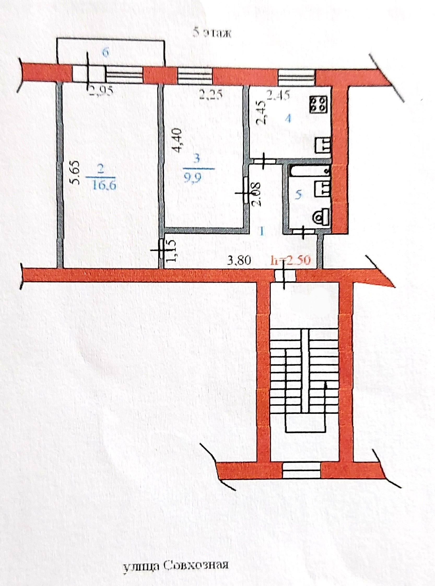 Высота потолков 2.5 м