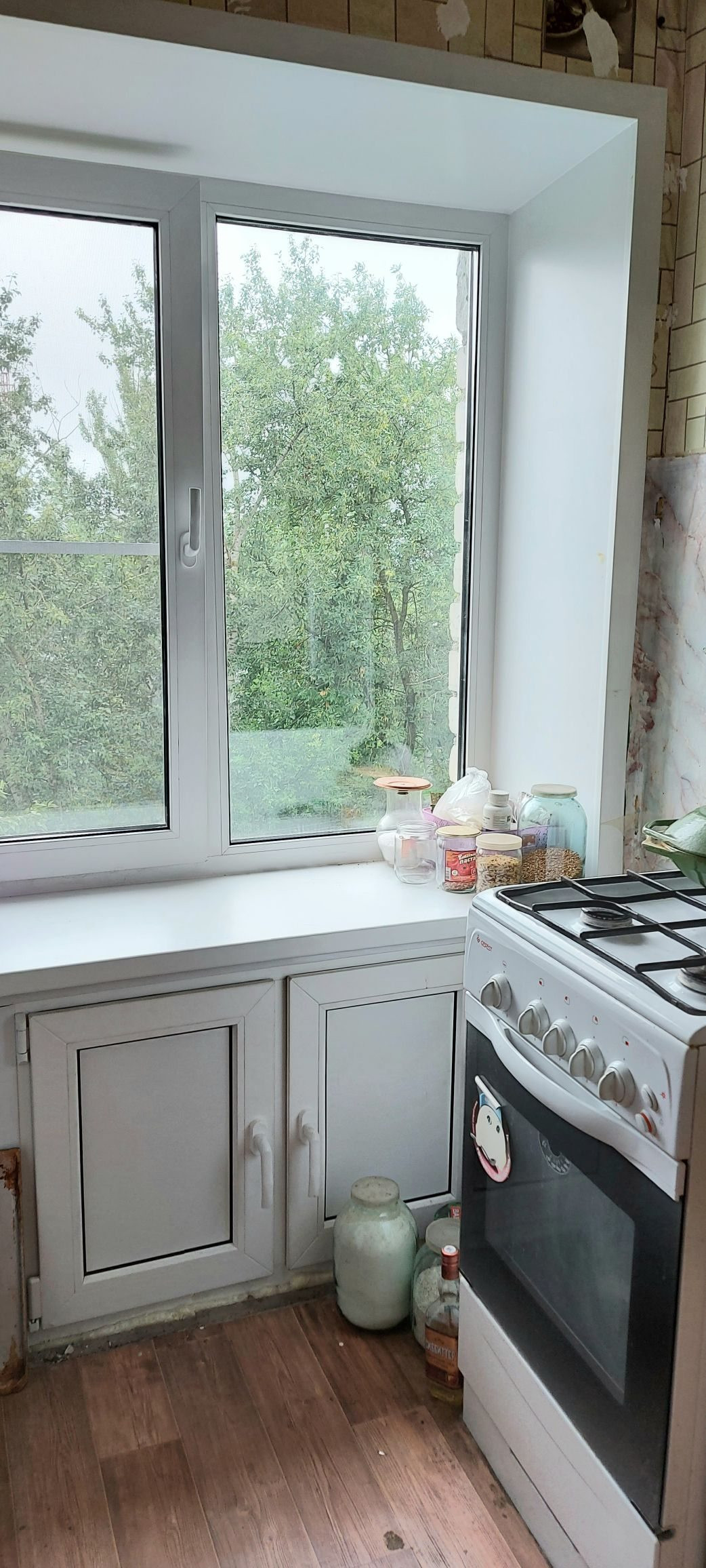 Пласт окна во всей квартире, частично поменяна проводка, новая входная дверь, в остальном требуется ремонт.