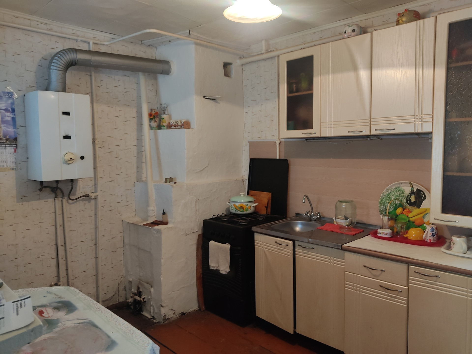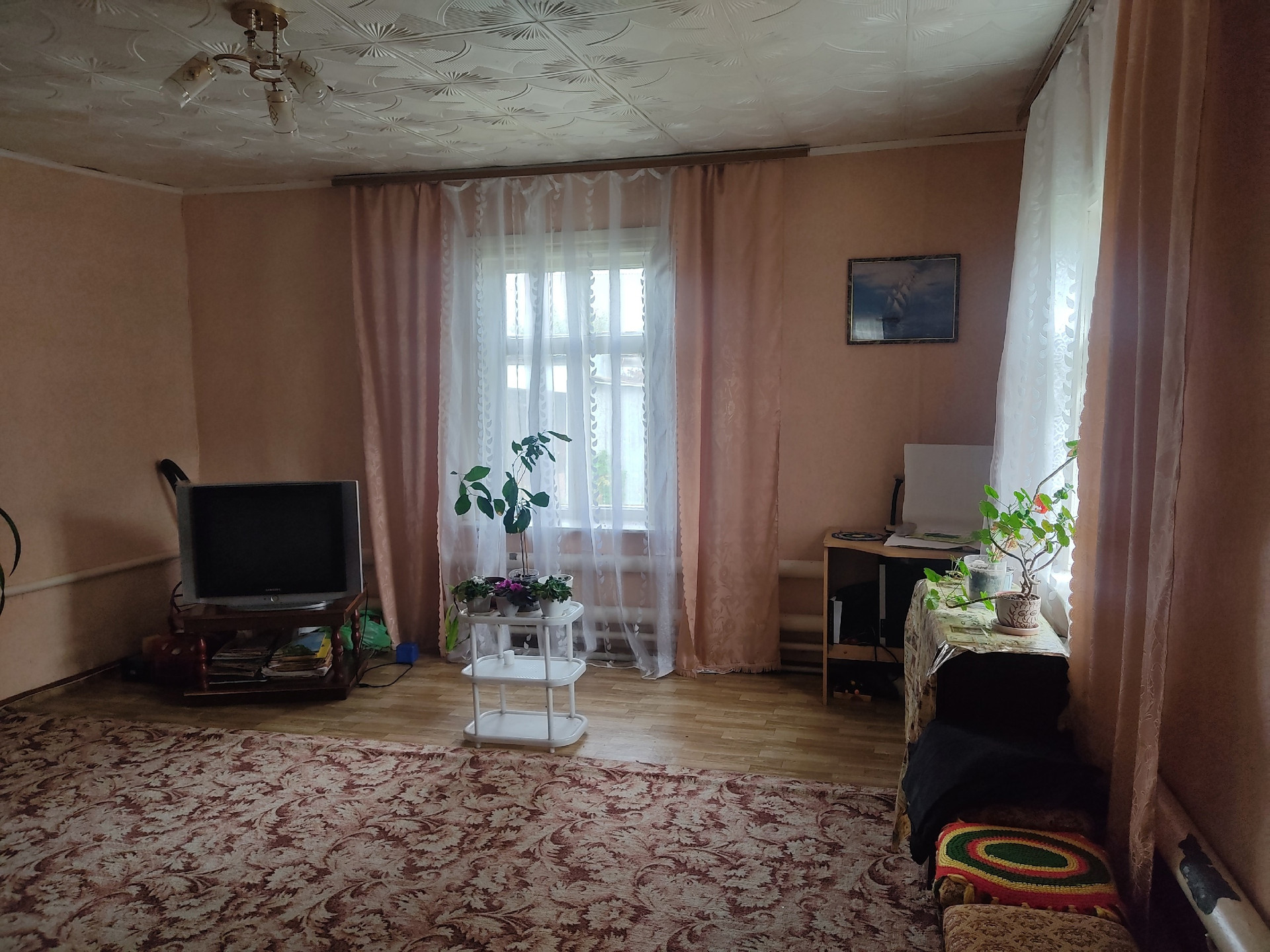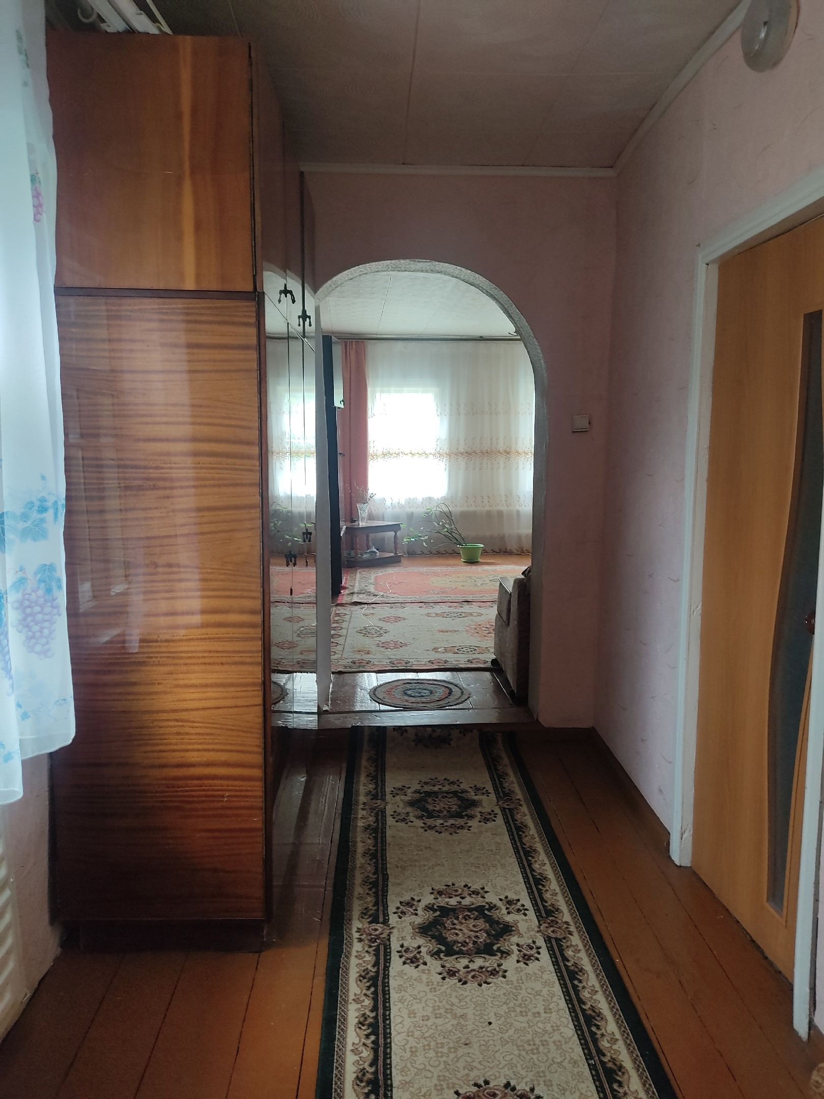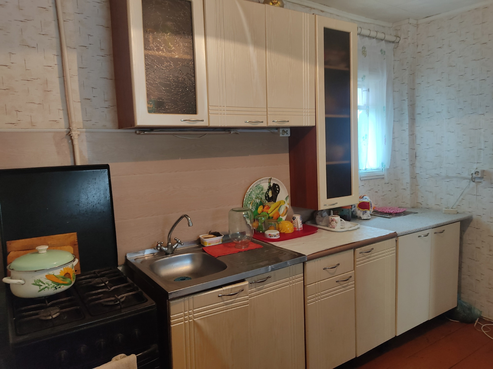 Продам 2-комн. квартиру со всеми удобствами в одноэтажном деревянном доме по ул. Коннозаводская, 16 (мкрн. Ахуны, остановка "Почта"). Дом срубовой на три квартиры, год постройки 1964 - 1995, в пользовании есть участок 12 сот. Площадь квартиры 80/50 кв.м., кухня 10 кв.м., отличная планировка, комнаты изолированы 27 кв.м. и 23 кв.м. (при желании можно легко перепланировать в 3-комн. или 4 комн. квартиру), есть гардеробная, подпол для хранения, просторный совмещенный санузел 8 кв.м., ванна 1,9 м., подводка под стиральную машину, высокие потолки 2,6 и 2,8 м., широкий коридор, кухонный гарнитур и мебель в подарок. В доме центральное водоснабжение и центральная канализация, отопление газовое индивидуальное (АОГВ), горячая вода - газовая колонка. В пользовании ровный, огороженный забором участок 12 сот., на участке большой сарай, огород, своё парковочное место под несколько машин, место под гараж или баню. Дом удачно расположен в зелёном спокойном районе, асфальтированная дорога, рядом остановки общественного транспорта, школа, детские сады, магазины, река, пляж. Документы готовы, свободная продажа. Торг.