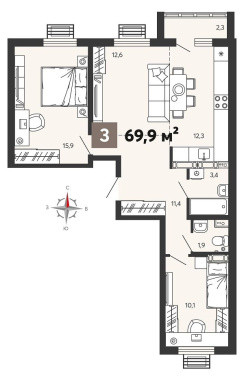 Общая площадь 69,9 кв.м