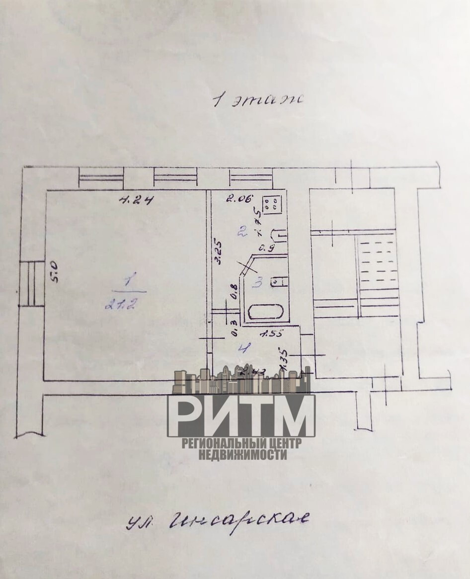 Квартира располагается на 1-м этаже 2-х этажного кирпичного дома. Общая площадь 31.6м2. Удобная, функциональная планировка. Просторная, правильной геометрической формы комната 21.2м2, кухня 4.7м2. Высокие потолки 2.95м2.