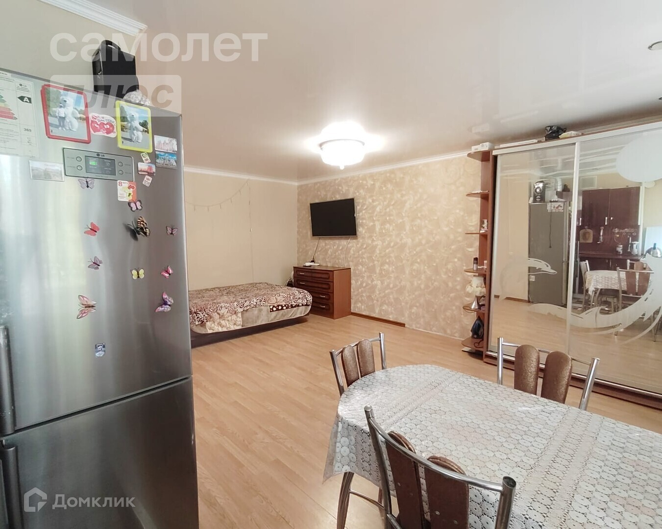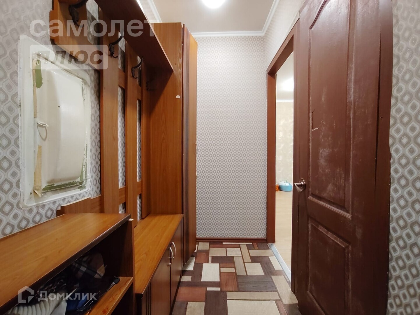 Остается кухонный гарнитур, большой зеркальный шкаф, комод и прихожая.