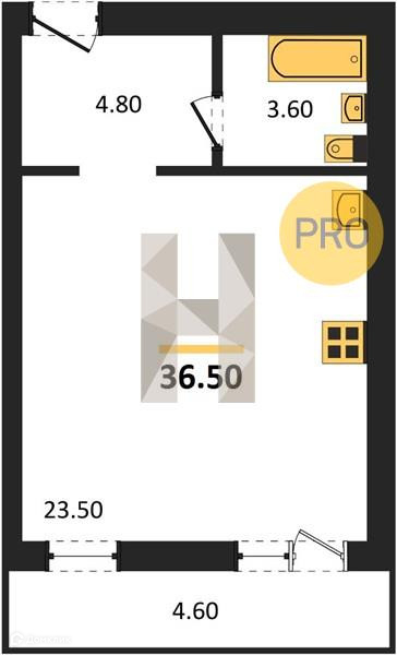 Общая площадь 36.5 м2