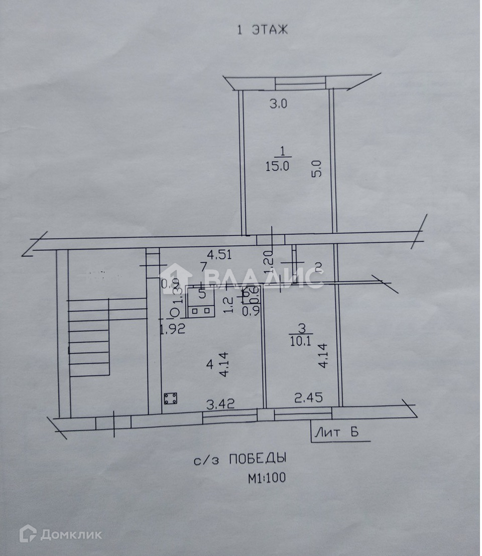 Квартира расположена на 1 этаже 2-этажного дома.