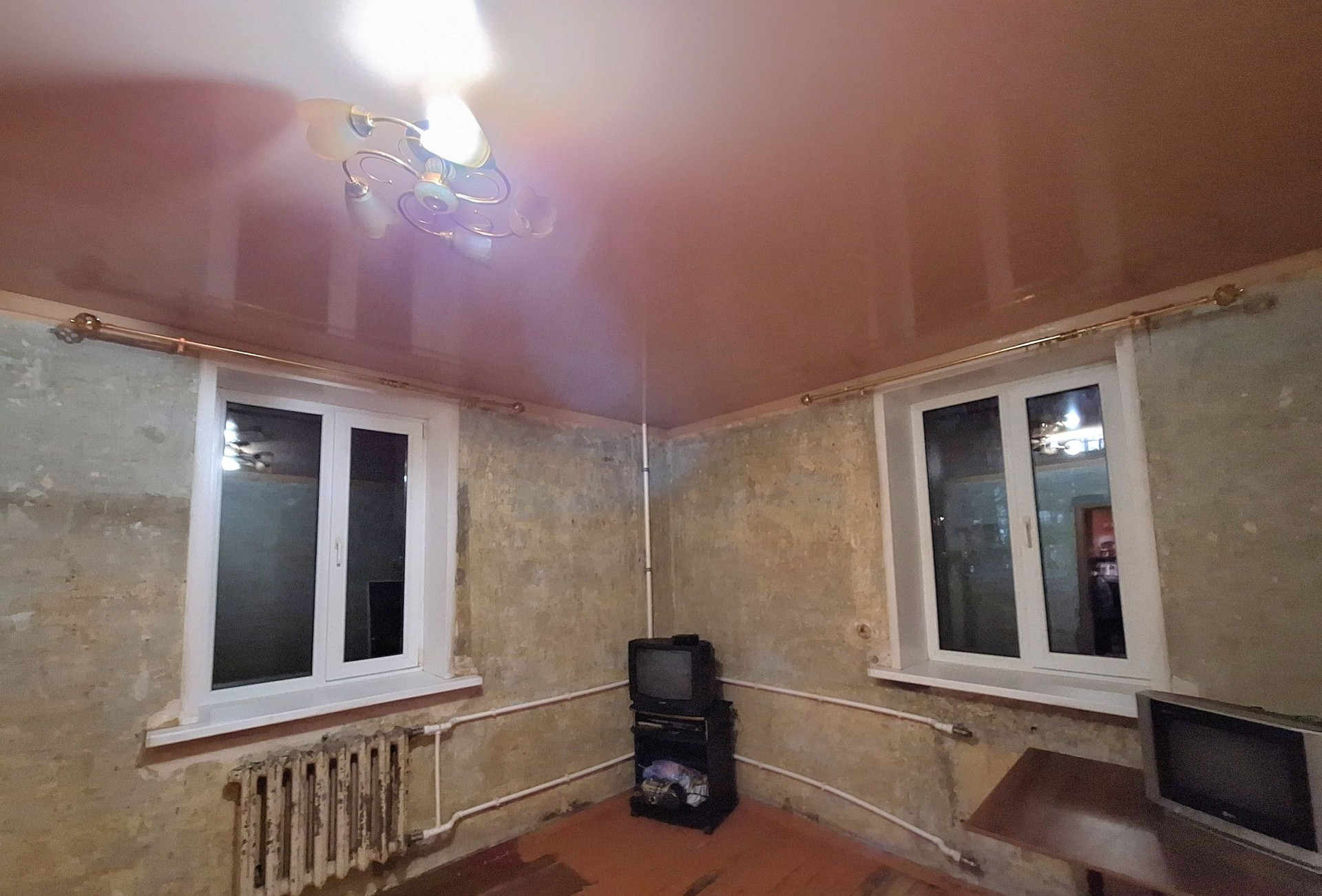 дверь,натяжные потолки с точечным