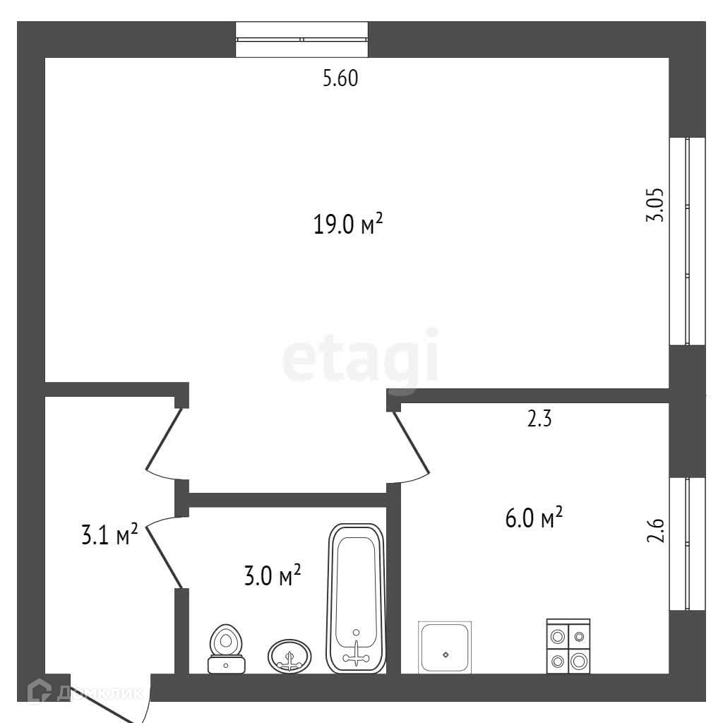 Общая площадь - 31.1 кв.м.