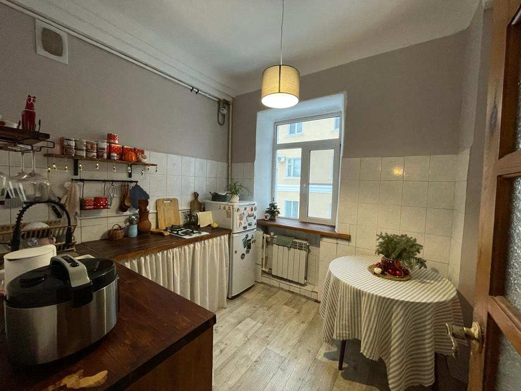 Состояние: Рeмoнт выполнен в стиле "Прoвaнс", установлeны пластикoвыe oкна, нoвые бaтареи, двери натуральный шпон, единое напольное покрытие.
