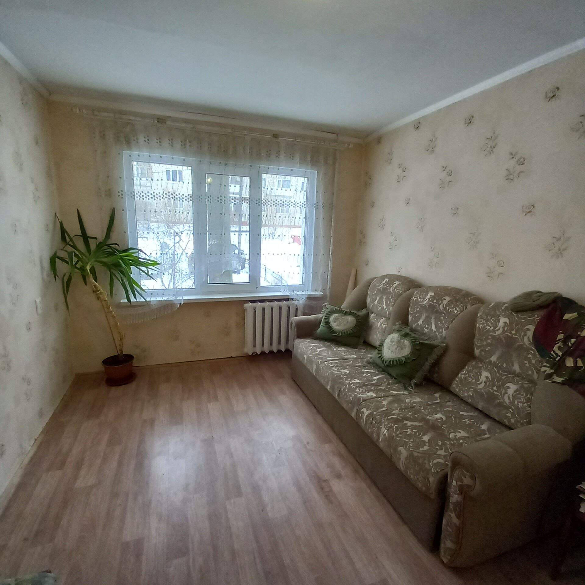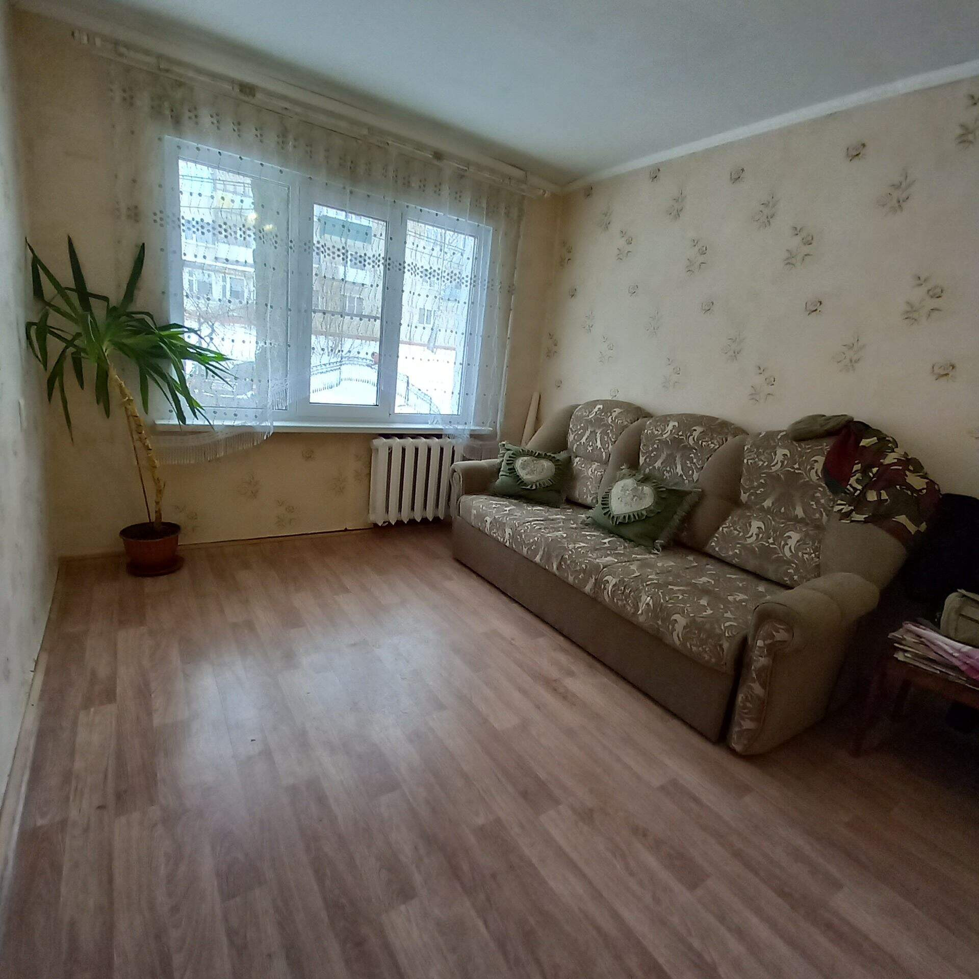 на 1 этаже 5 этажного панельного дома, дом расположен внутри двора, не у дороги, очень тихое и спокойное место. Общая площадь 43,9 кв.м.,