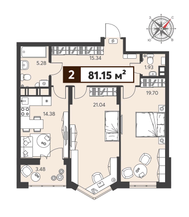 Общая площадь 81.15 м2