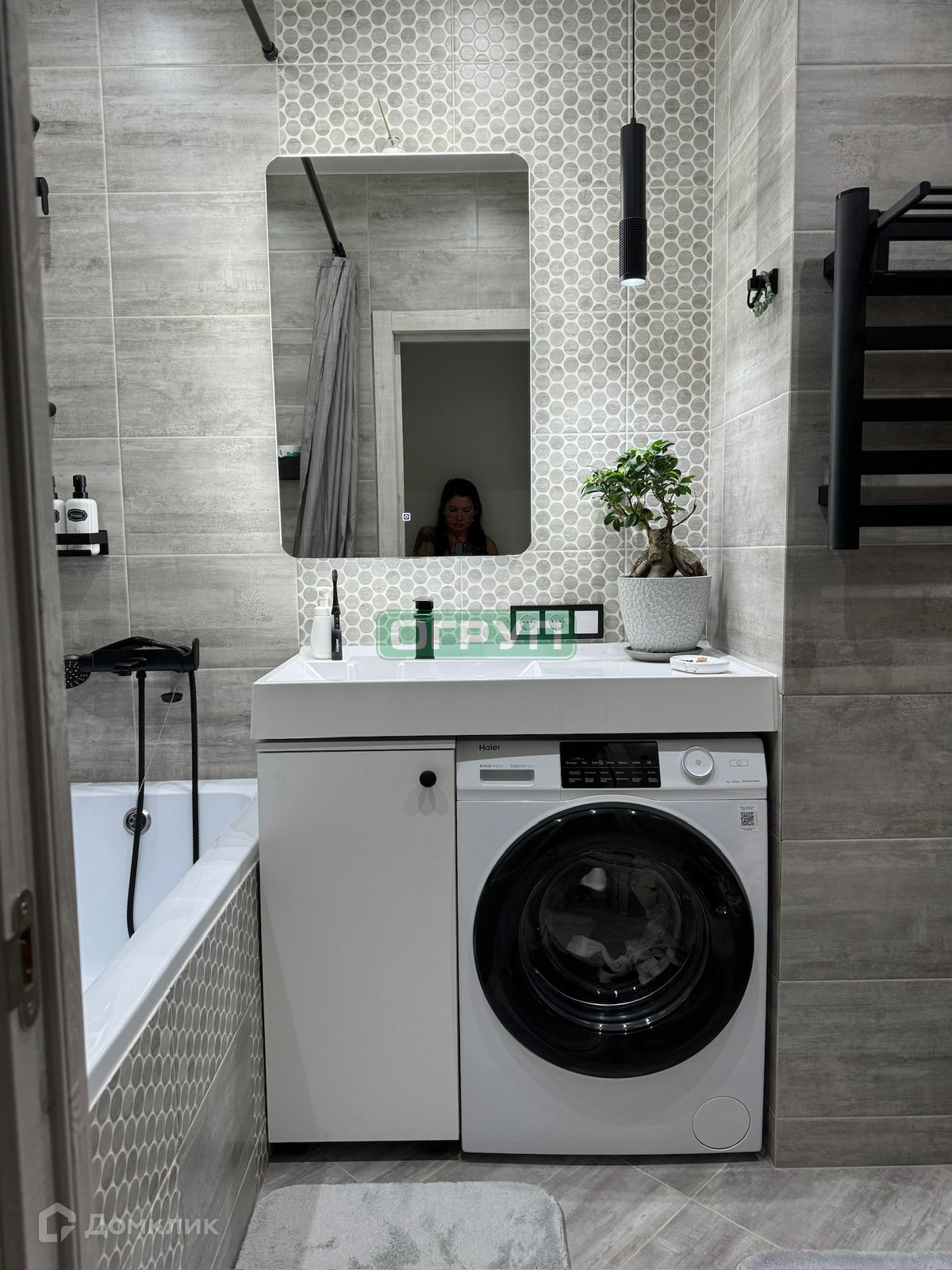 Ванная в кафеле, запил под 45 градусов, инсталяция GROHE, качественные, дорогие смесители. Гигиенический душ. Зеркало - шкаф с подсветкой. Установлен электрический полотенцесушитель, водонагреватель на все точки воды.