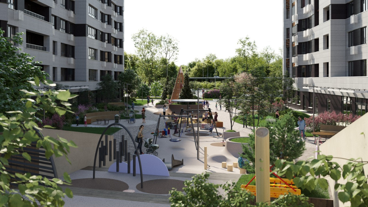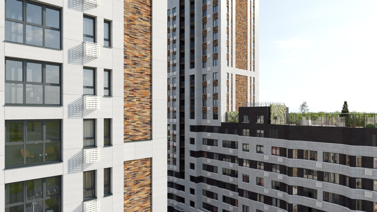 «Ньютон» — это два корпуса разной высоты, от 7 до 18 этажей. Это создает интересный ландшафт района. Такое чередование дарит ощущение целостного образа, одновременно устойчивости и развития.