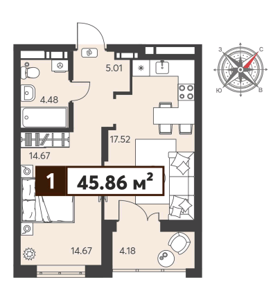 Общая площадь 45.86 м2