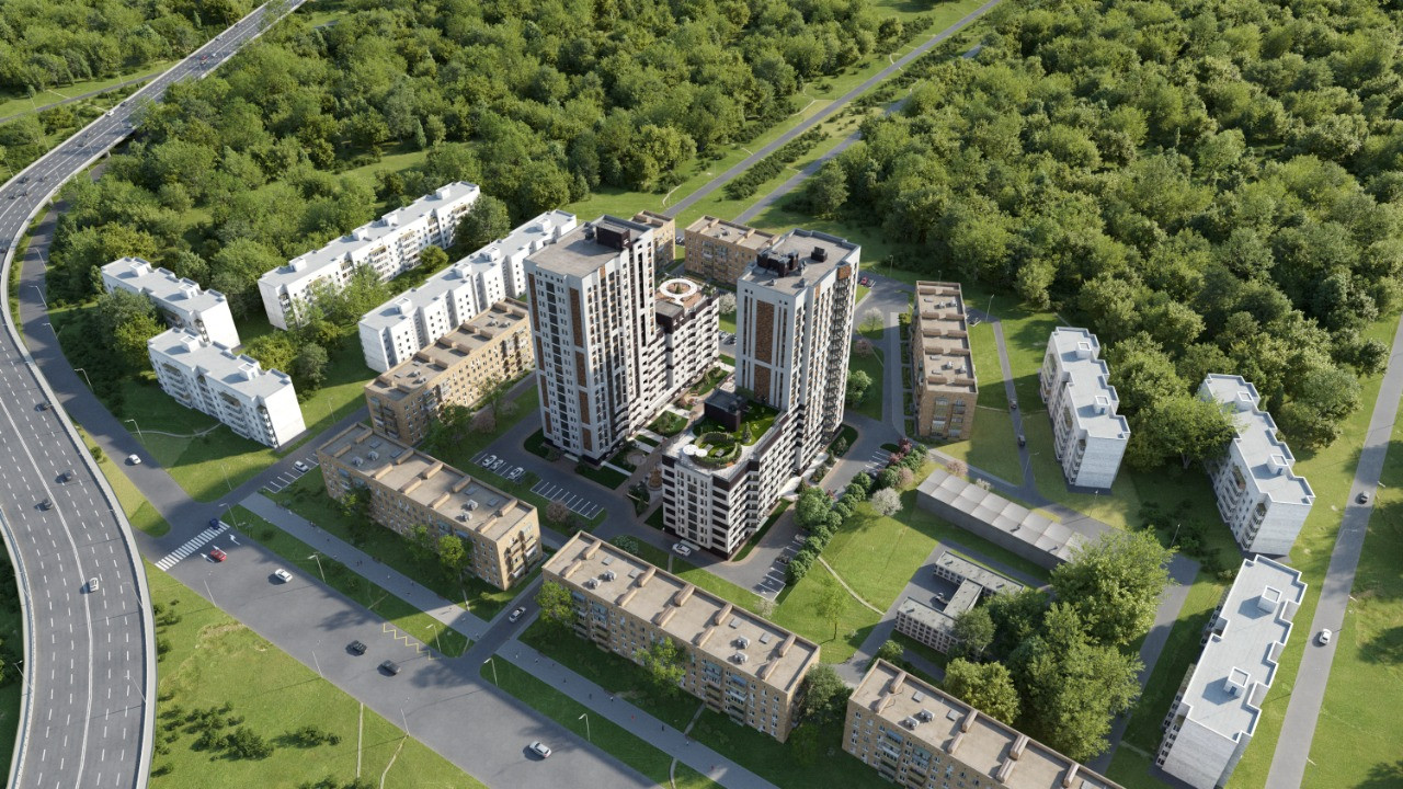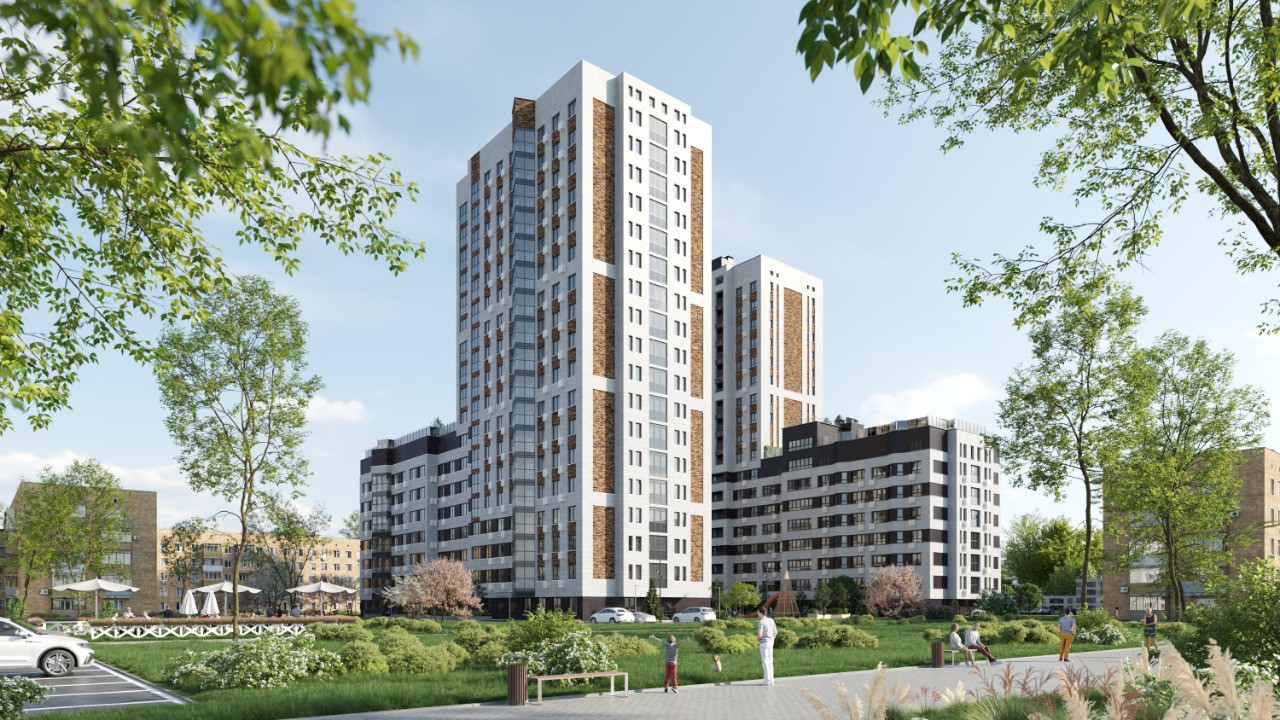 «Ньютон» — это два корпуса разной высоты, от 7 до 18 этажей. Это создает интересный ландшафт района. Такое чередование дарит ощущение целостного образа, одновременно устойчивости и развития.