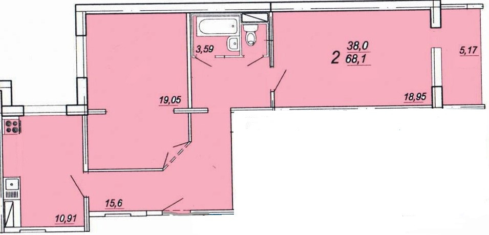 Жилая площадь 38 м2
