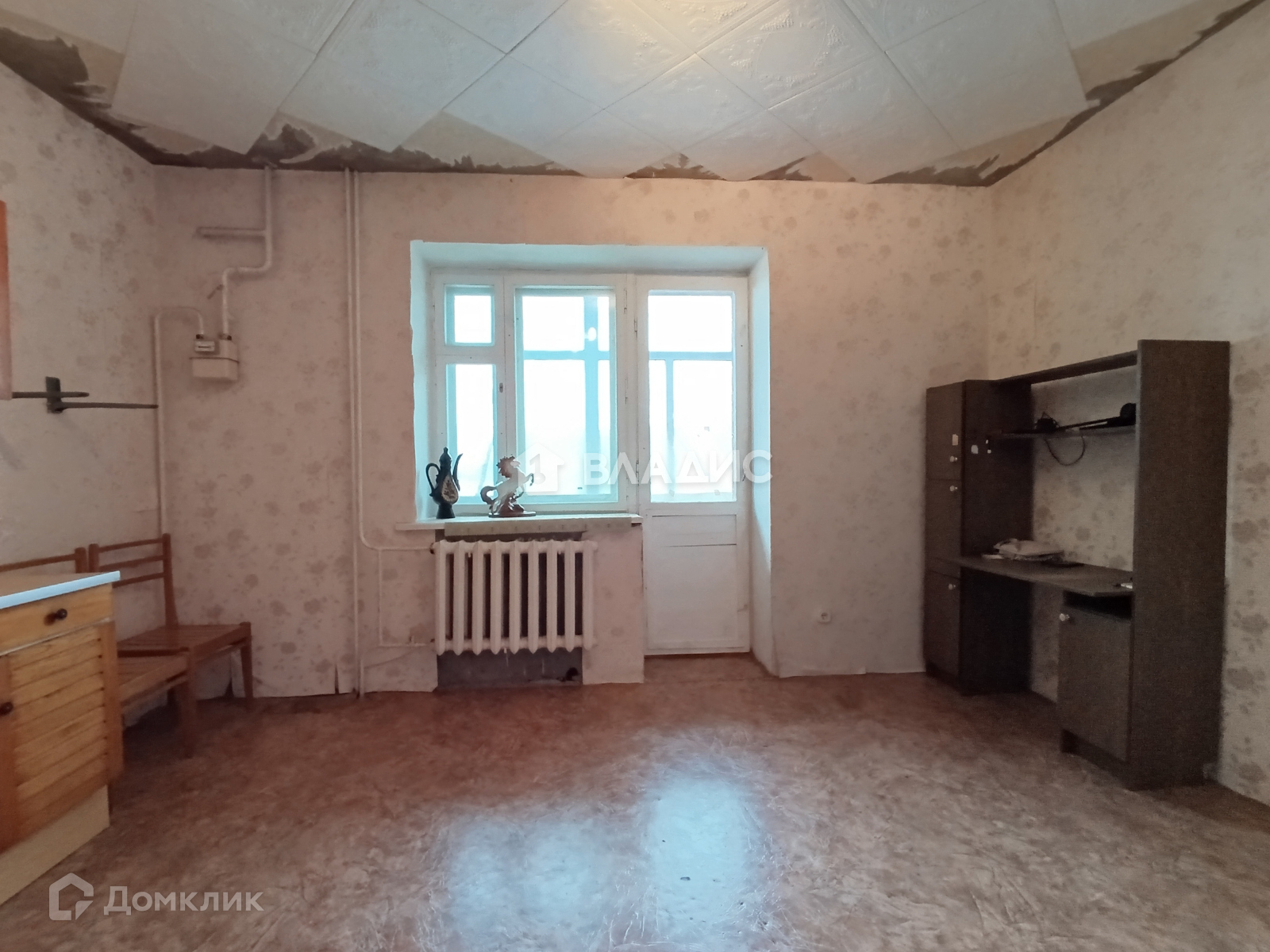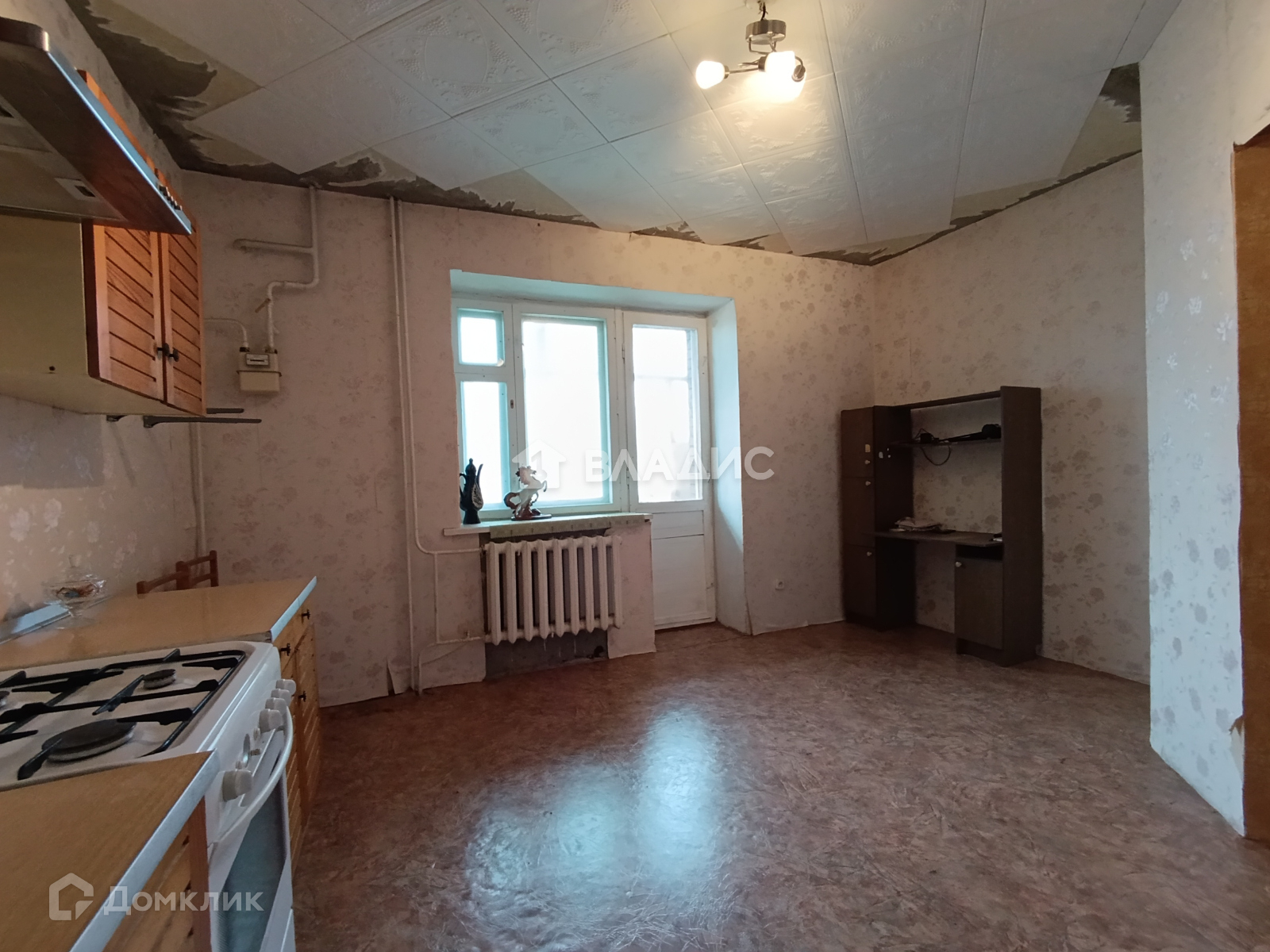 Комната светлая, большой площади, где вы сможете реализовать любые свои дизайнерские идеи.  В целом квартира требует ремонта, в комнате натяжной потолок, окна деревянные. Санузел раздельный. Шикарная кухня, которая вместит всех ваших гостей.