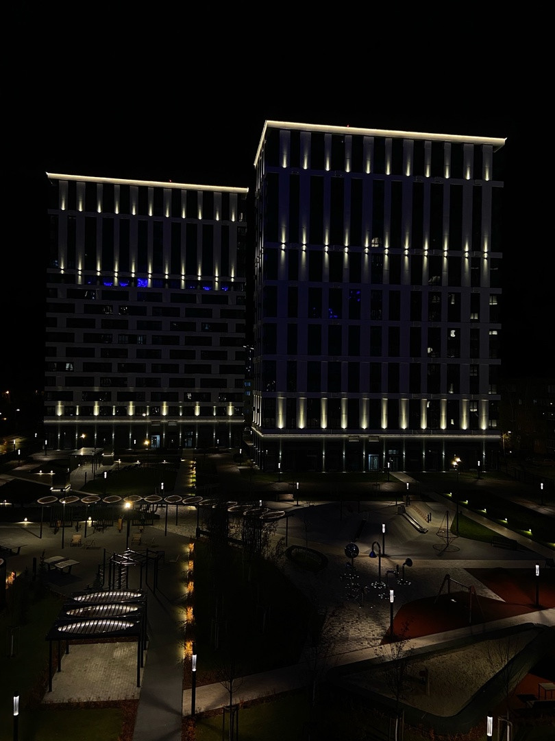 Расположена на 5 этаже 17 этажного кирпичного дома, преимущества - нет шума и пыли от дороги. ·