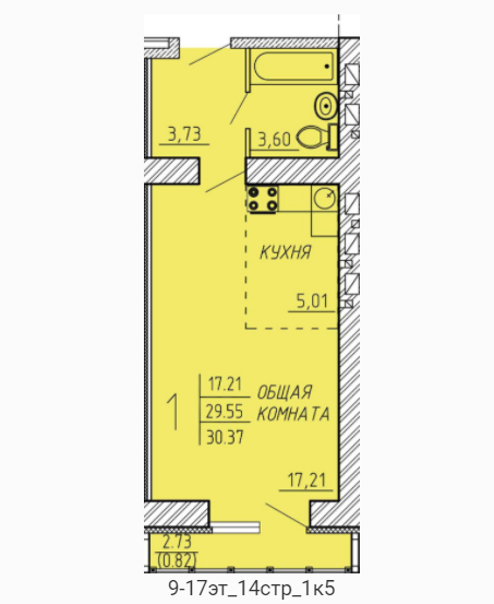 Общая площадь квартиры 30,28 кв.м.