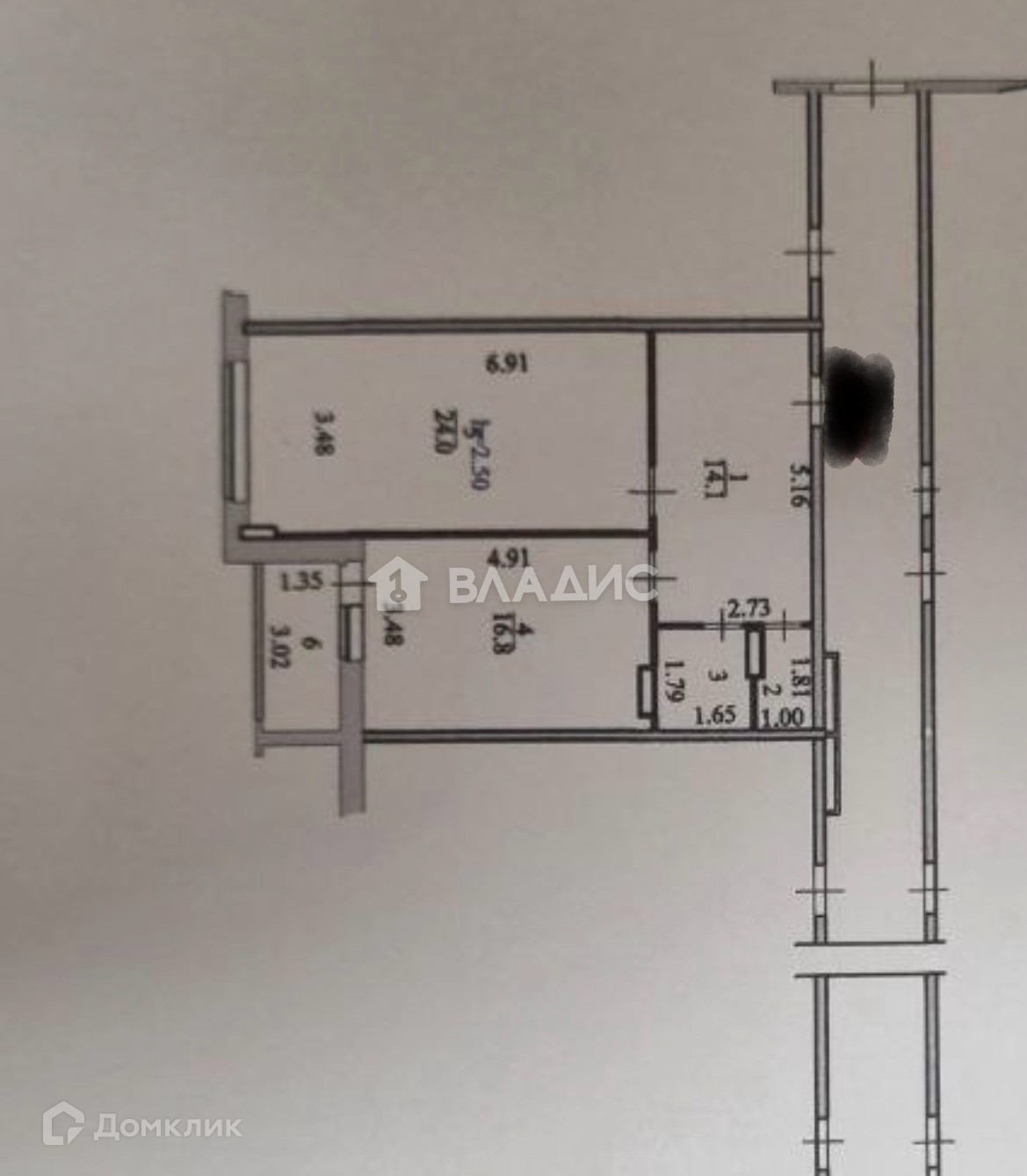 Жилая площадь: 24 кв.м.