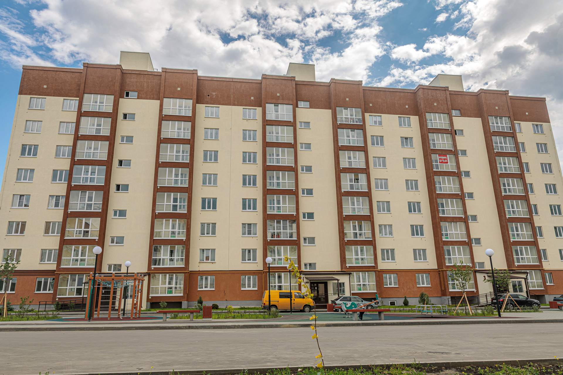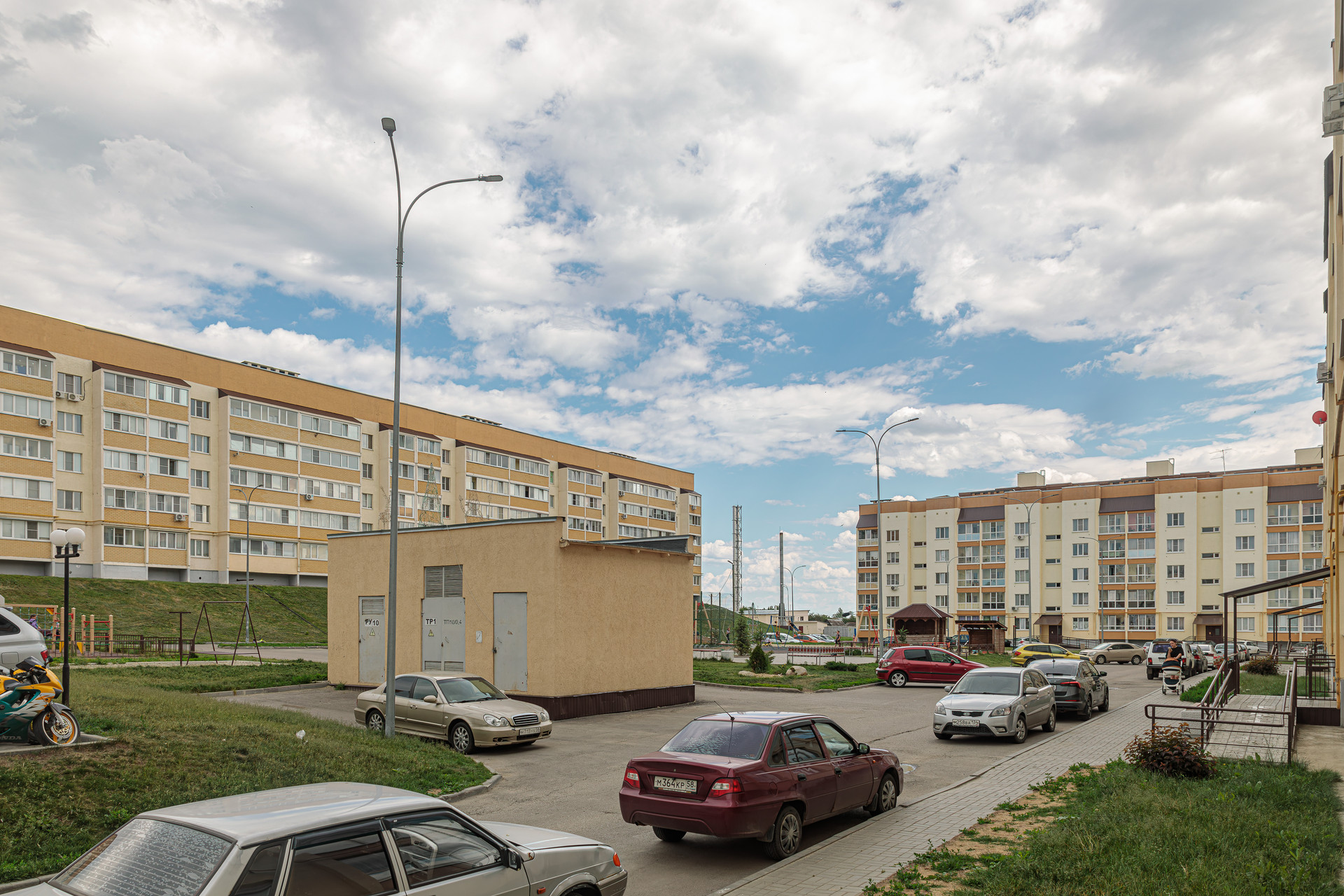 Современный спальный район, конечная остановка 34 маршрутки возле жилого комплекса.