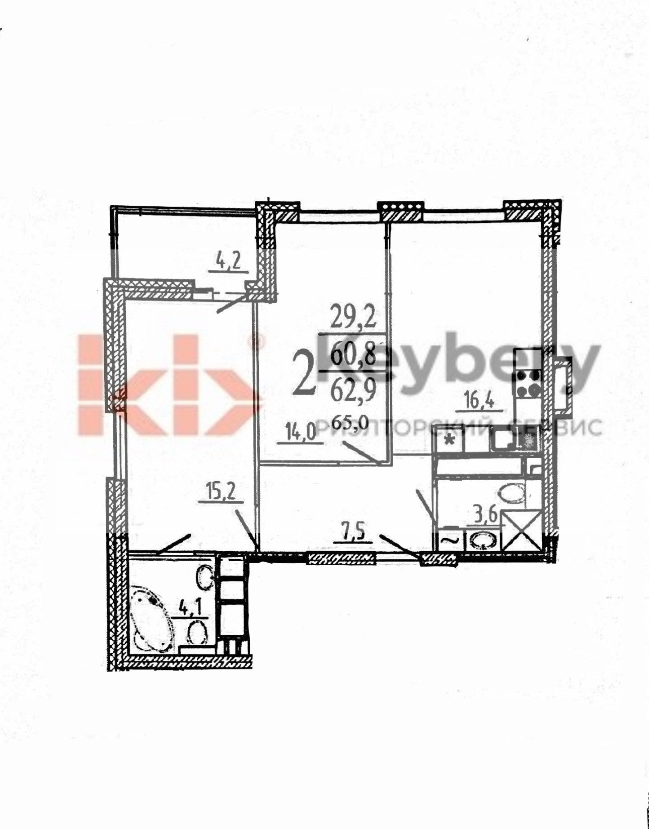 Жилая площадь 29.2 м2