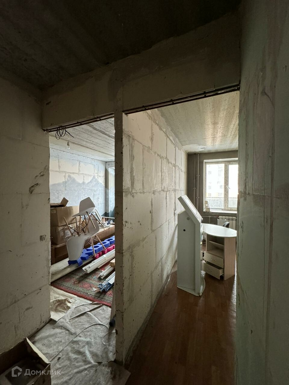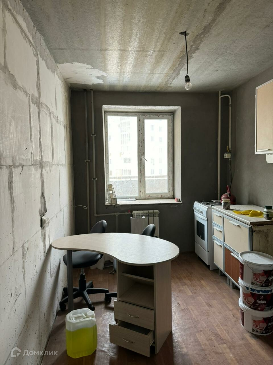 В квартире выполнен черновой ремонт, разведено электричество, произведена стяжка и установлены счетчики на воду.