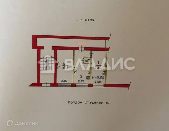 Квартира расположена на 1 этаже 3-этажного дома.