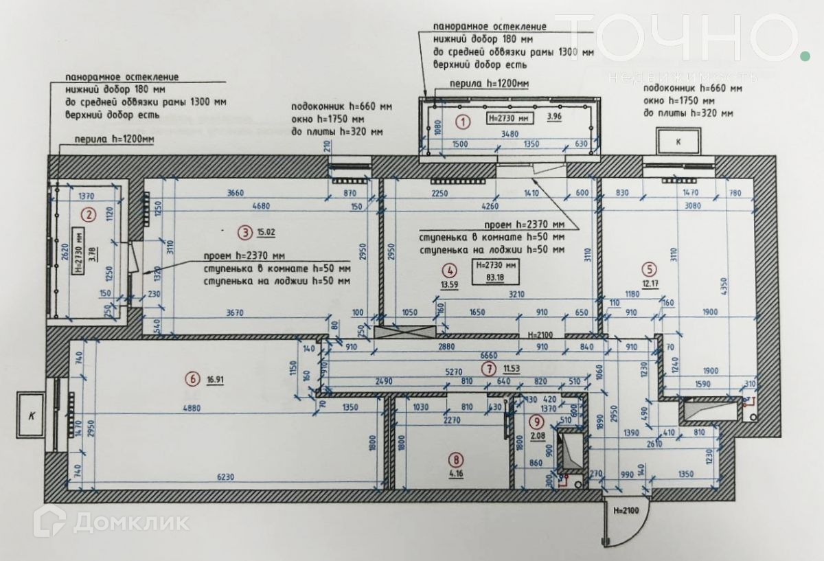 В квартире уже выполнена часть ремонтных работ: произведена замена стеклопакетов на обеих лоджиях на премиальные трехкамерные стеклопакеты с панорамным остеклением, произведен демонтаж перегородок.