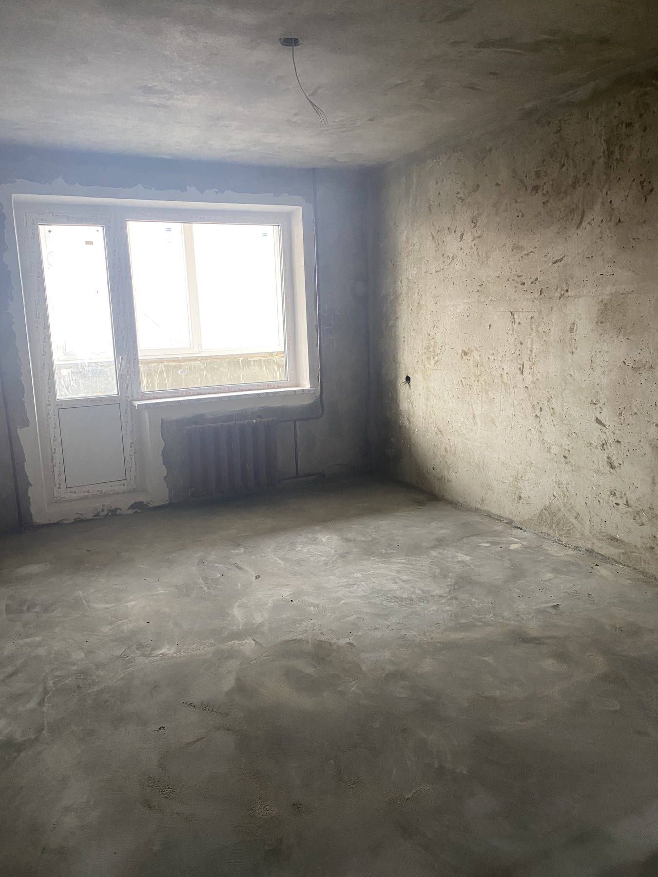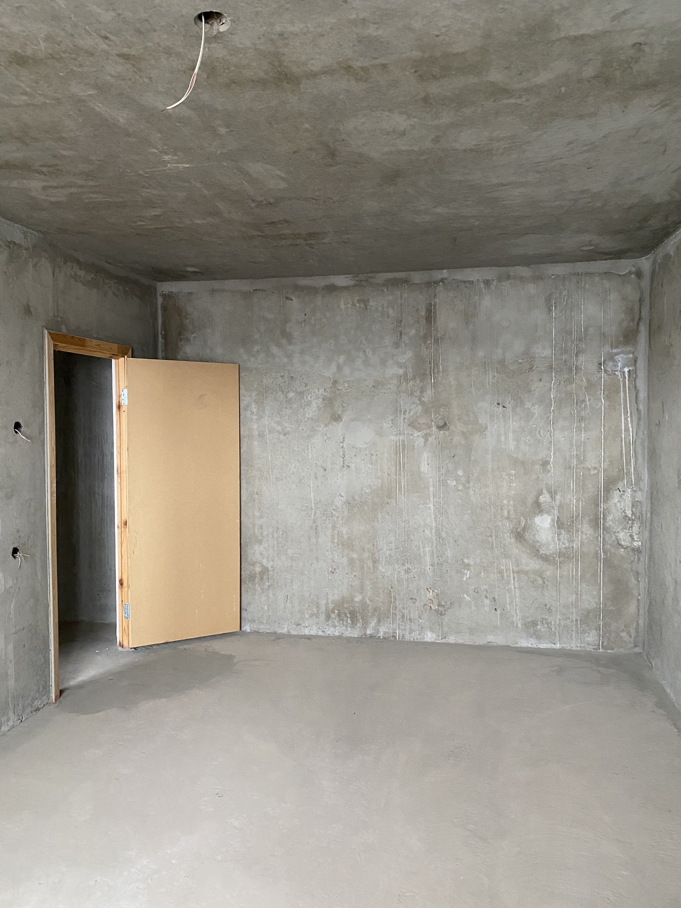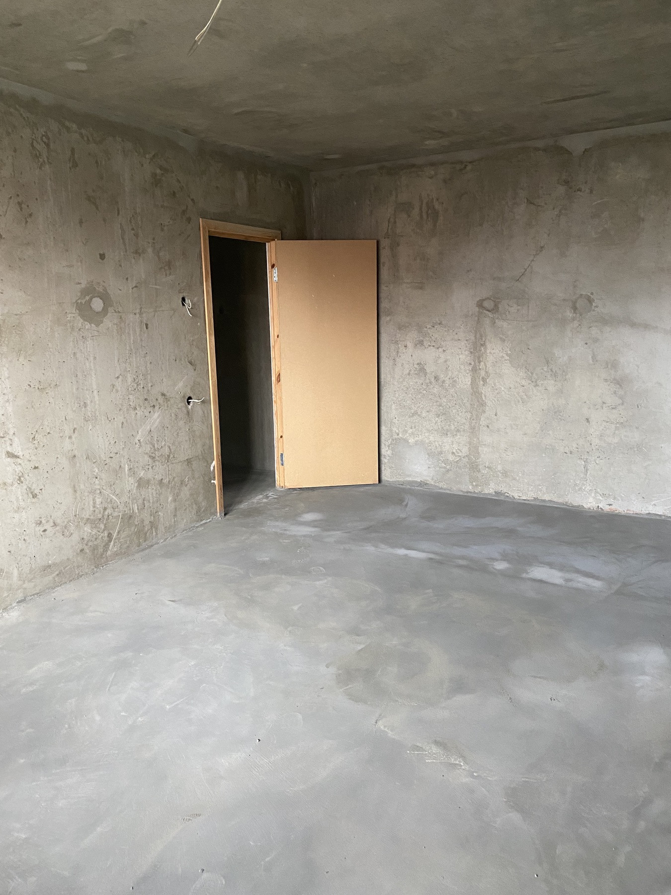- Полы в жилой комнате, на кухне, в коридоре, санузле – бетонные, без стяжки.