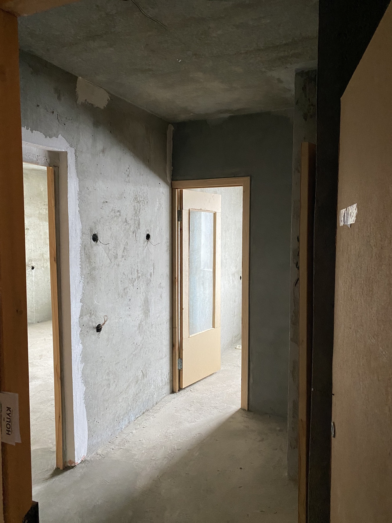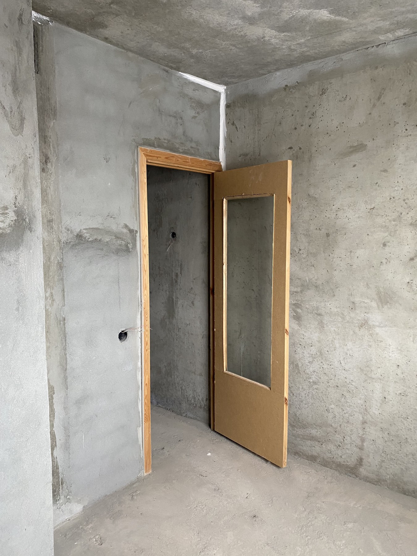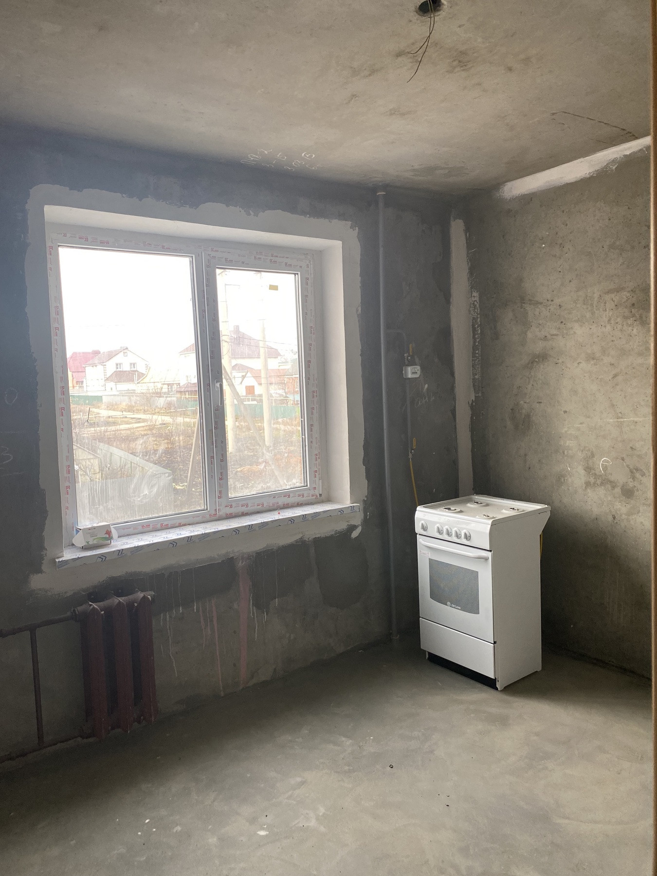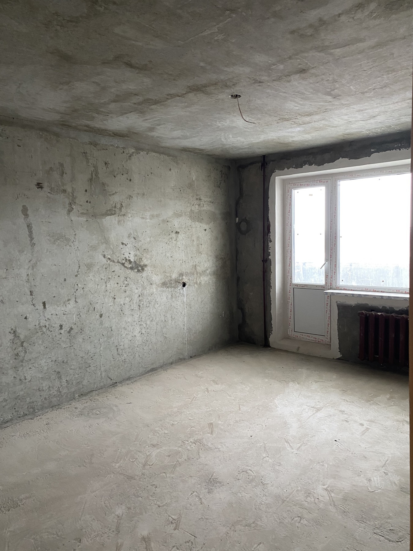- Полы в жилой комнате, на кухне, в коридоре, санузле – бетонные, без стяжки.