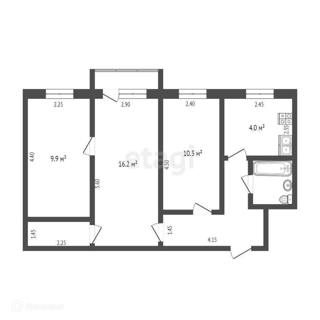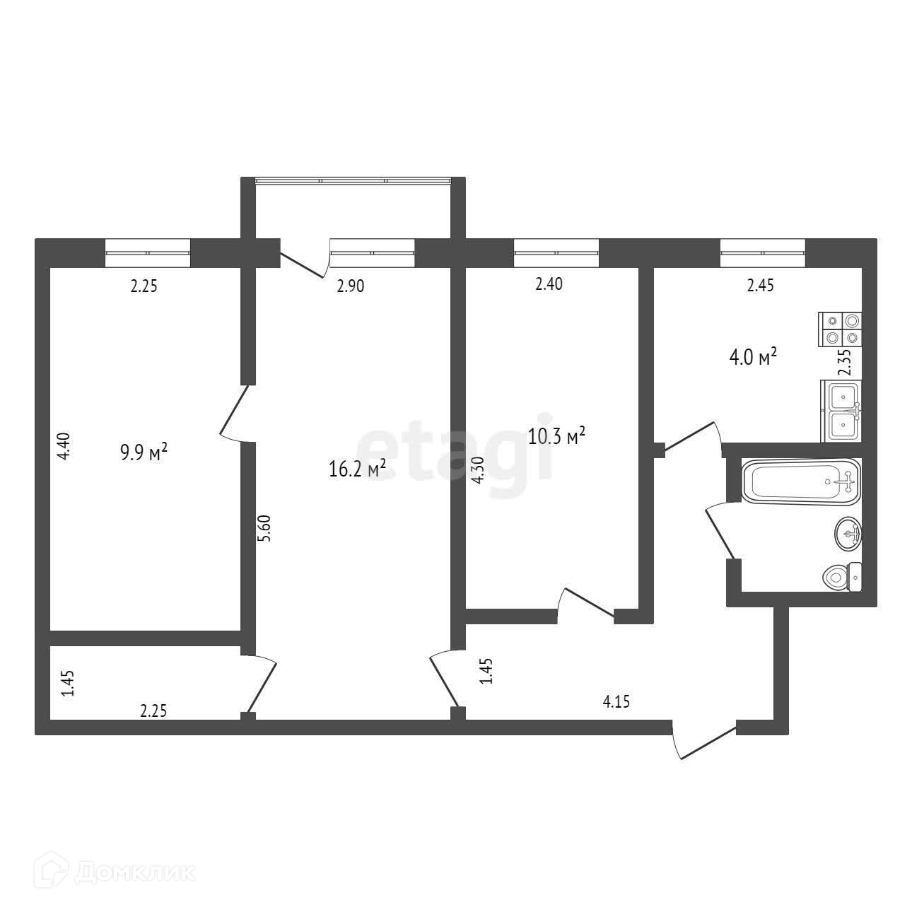 Общая площадь 57.3 м2