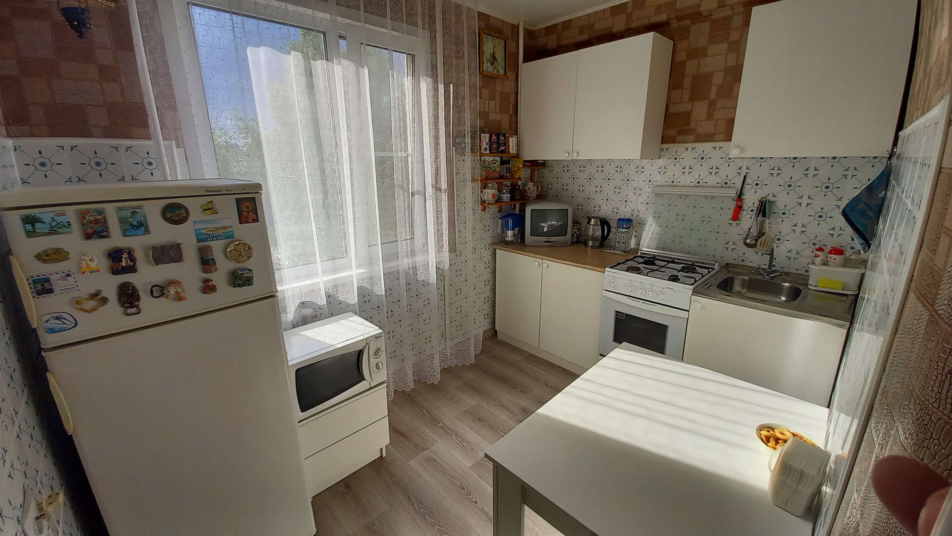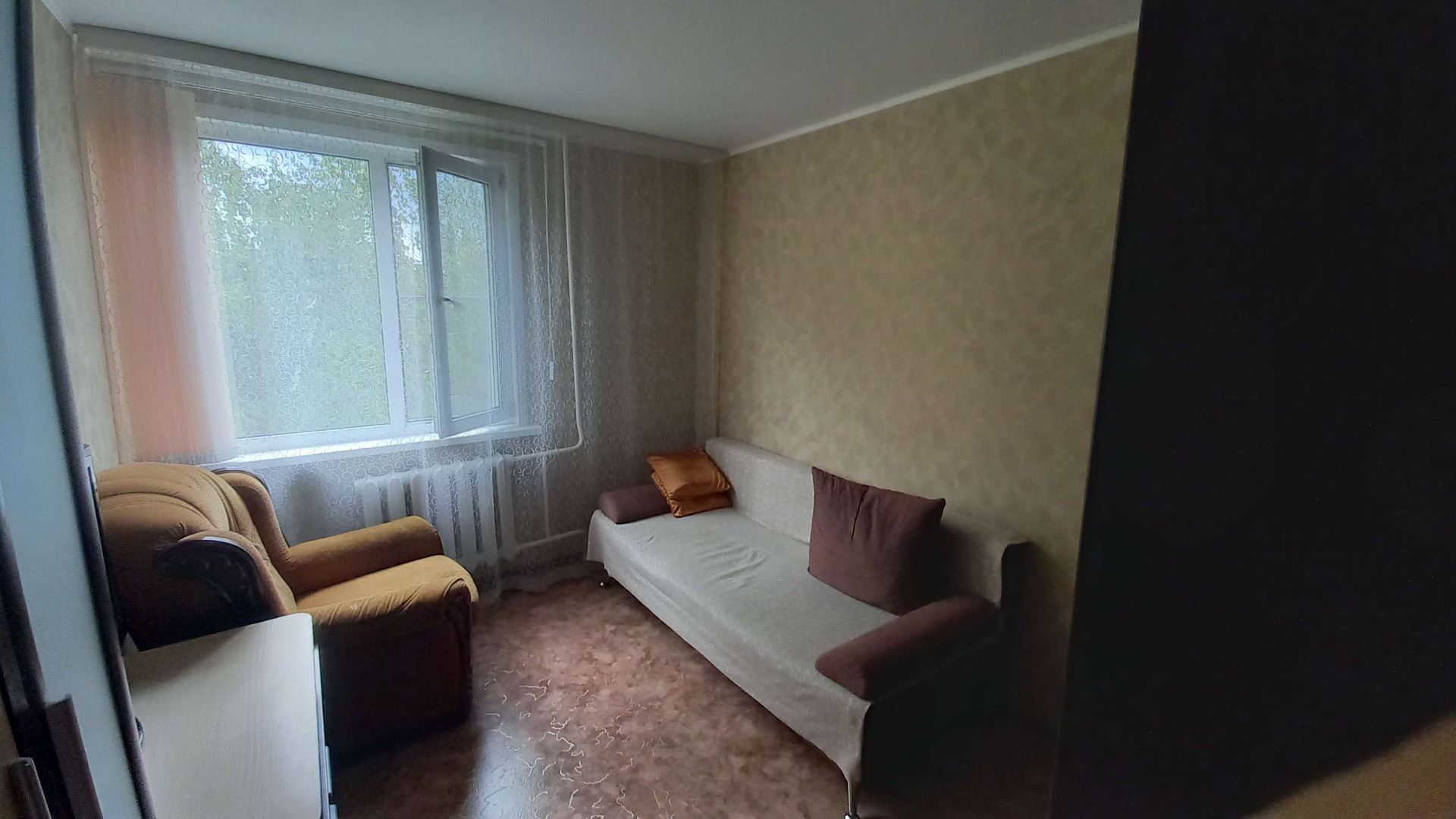 Косметический ремонт, утеплённая остекленная пласт.окном лоджия (выведена батарея), также по всей квартире установлены пласт. окна, во всех комнатах выровнены стены, везде натяжные потолки, напольное покрытие-линолеум, санузел раздельный. Остаётся почти вся мебель в подарок.