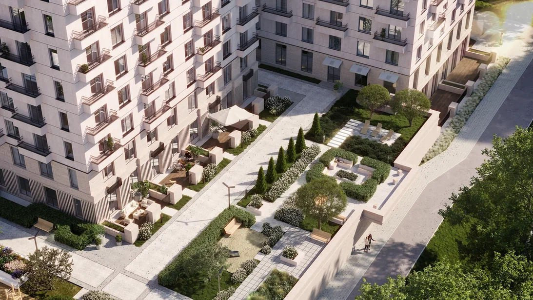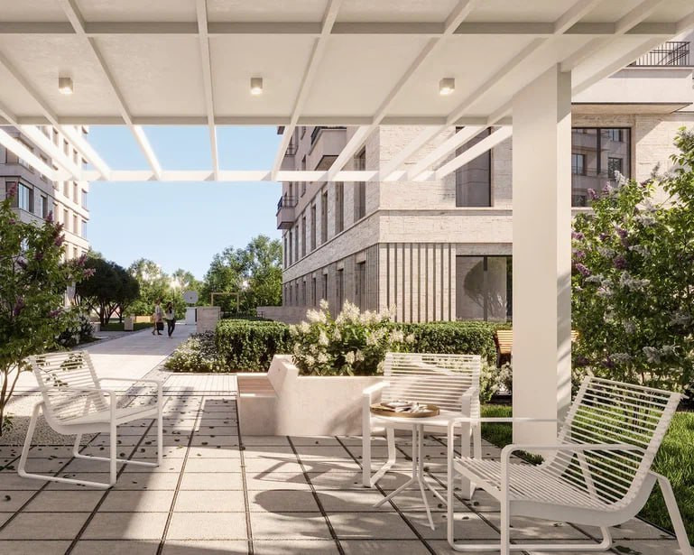 Территория огорожена, двор без машин, что порадует семьи с детьми, также круглосуточное видеонаблюдение. Благоустройство территории в эко-стиле: деревянное оборудование на детских площадках, беседки с навесом, зоны для прогулок, шезлонги.