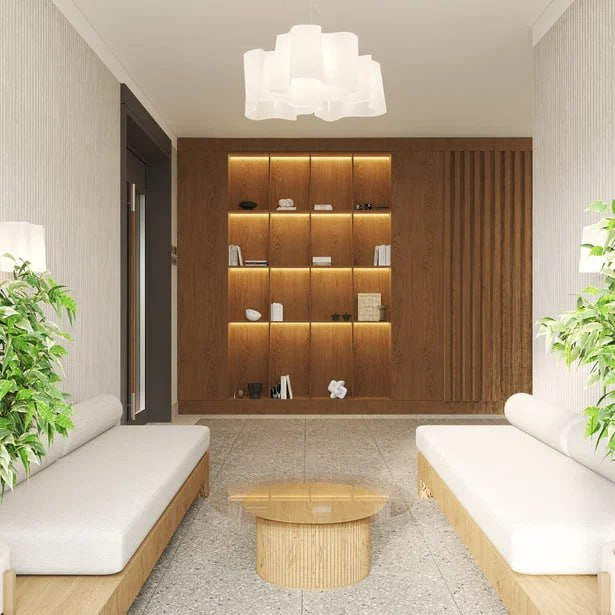 В ЖК Академия не подъезды, а парадные. Зоны ожидания оформлены в стиле библиотеки.