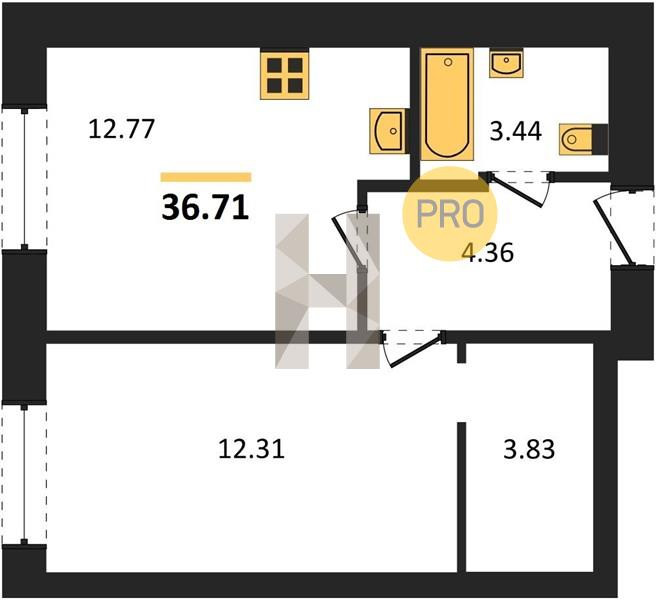 Общая площадь 36.71 м2