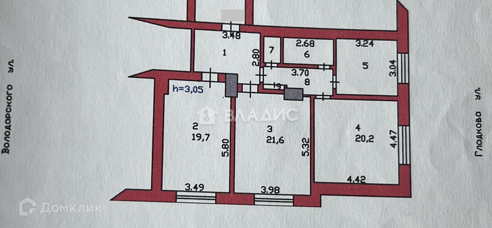 Высота потолков 3.05 м