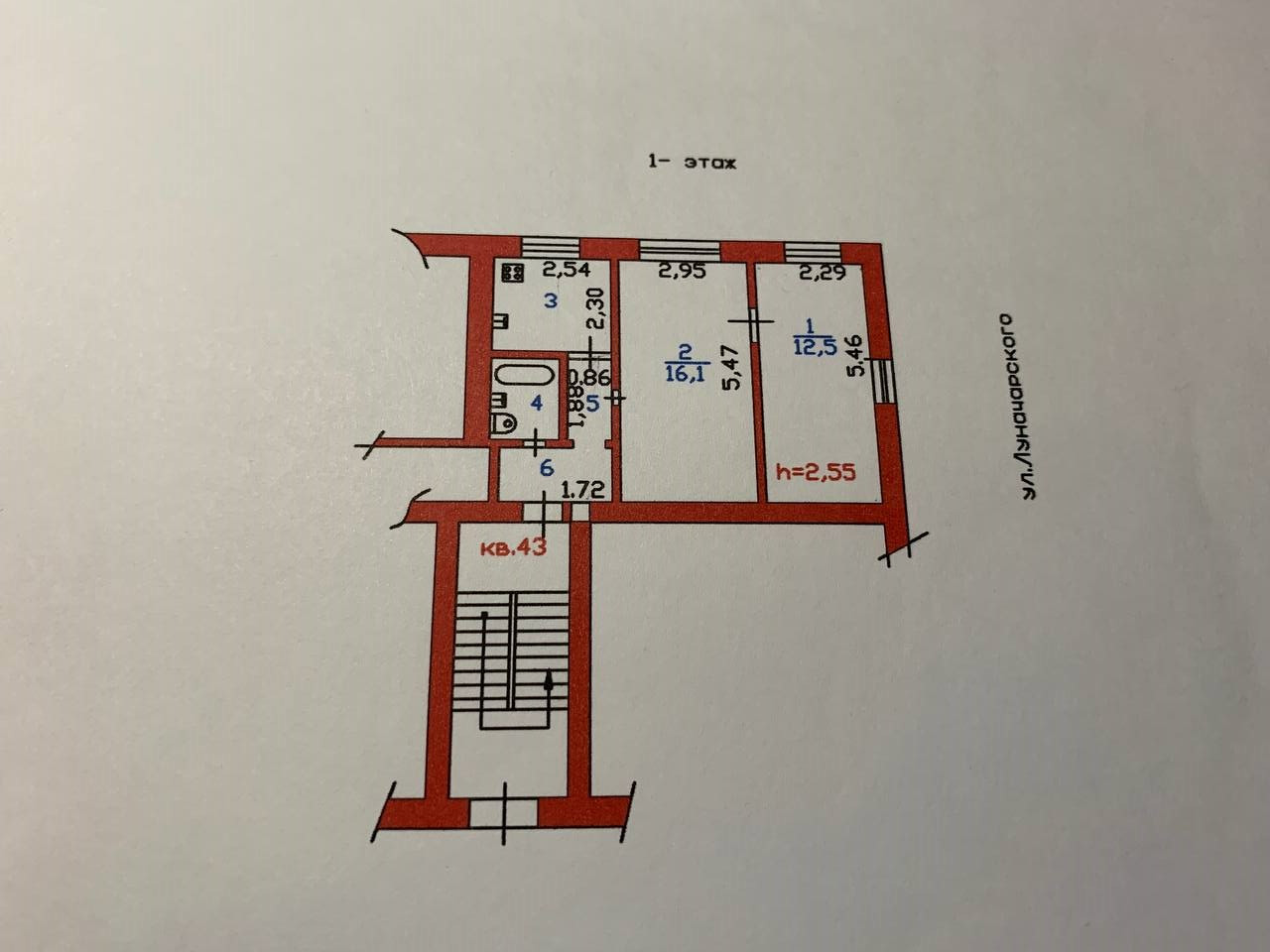 2-комнатная квартира, 40.6 м2, этаж 1 / 5, на продажу в Пензе, улица Луначарского, 32