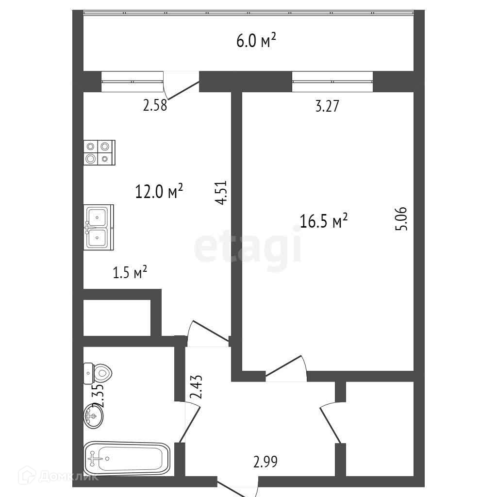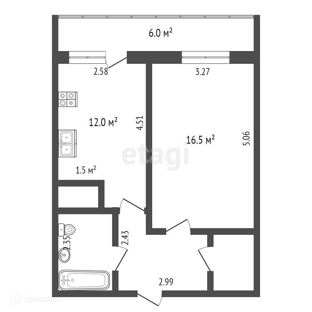Балкон, лоджия 1 балкон